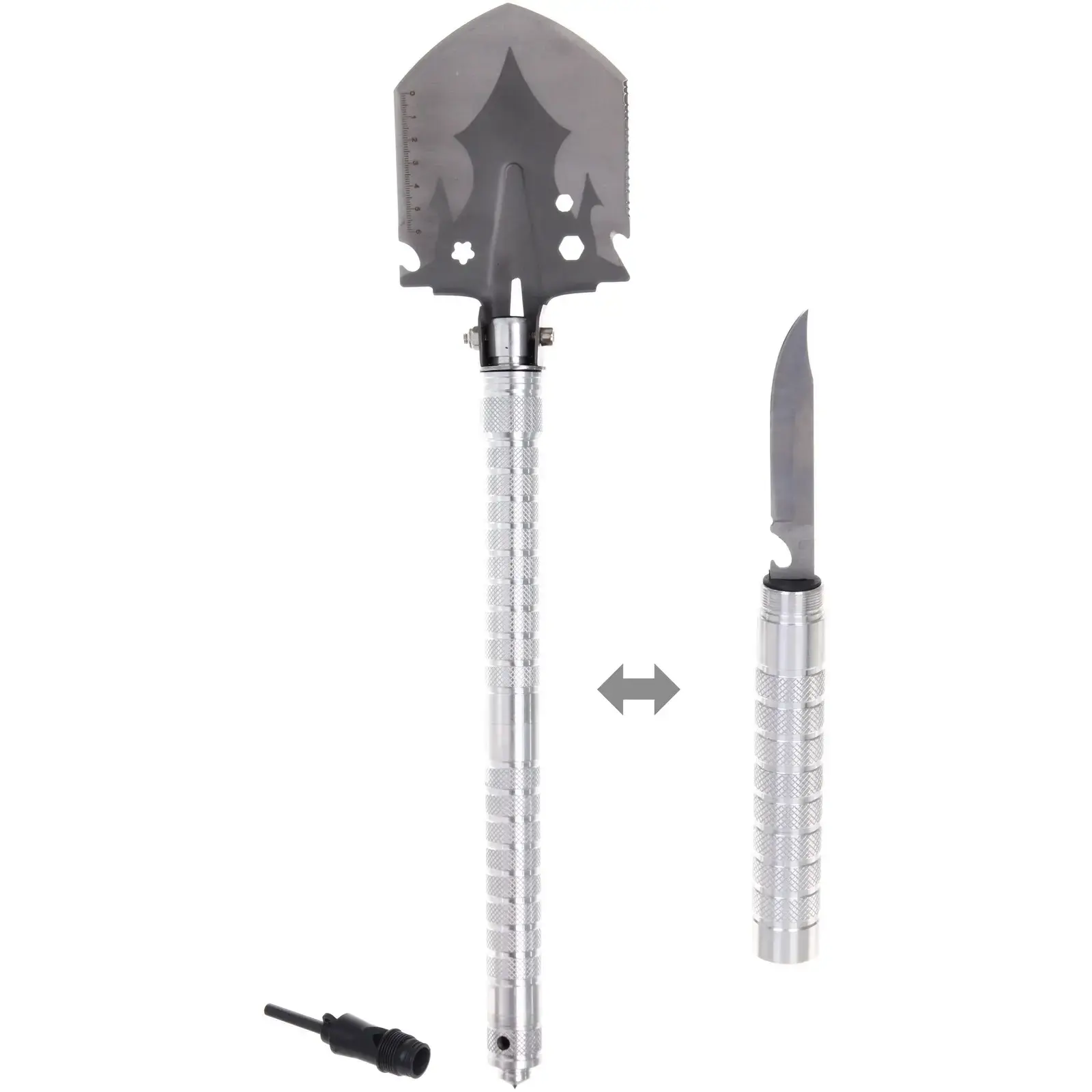 Лопата имеет телескопическую ручку с рифленой поверхностью для удобного захвата, а нож легко фиксируется на ручке. Все элементы набора имеют компактные размеры, что делает их удобными для переноски. Не упустите возможность сделать ваш отдых более комфортным и безопасным с нашим набором туристических инструментов!