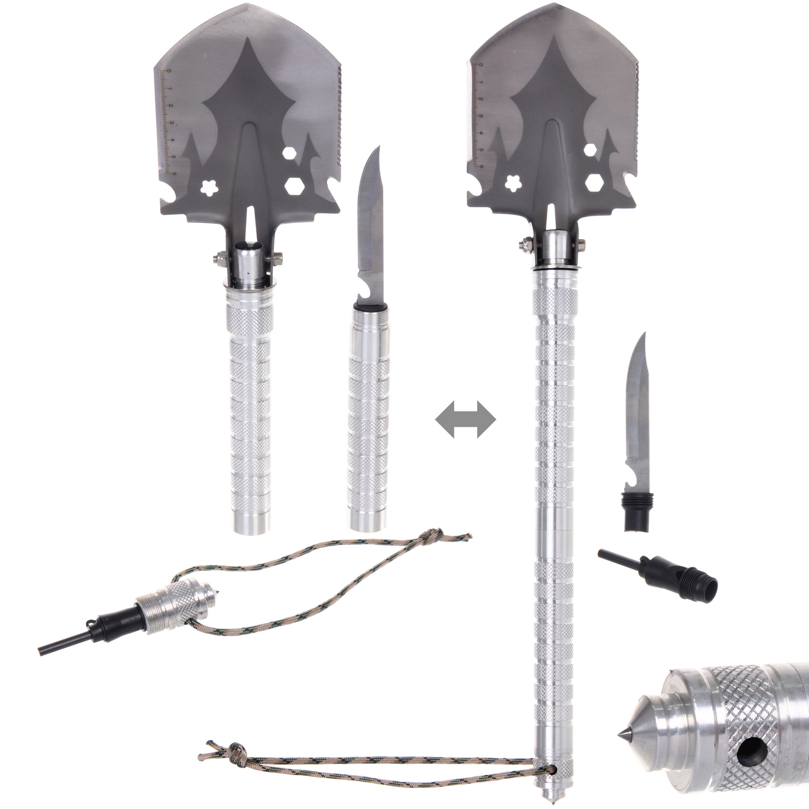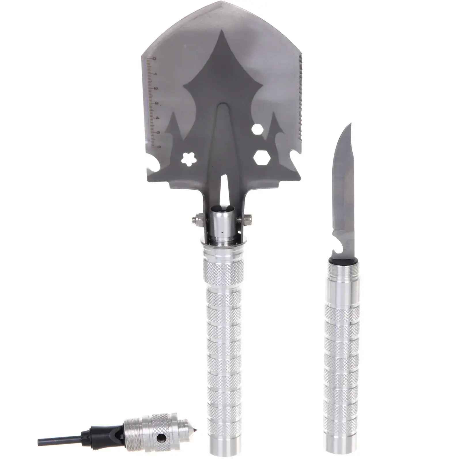 Каждый элемент набора выполнен из высококачественных материалов, что гарантирует долговечность и надежность. Лопата раскладная, легкая и компактная, идеально подходит для копки, рытья и других задач. Нож с гладким лезвием удобно использовать для резки, а огниво поможет разжечь огонь в любых условиях. Все предметы удобно помещаются в чехол, что облегчает транспортировку и хранение.