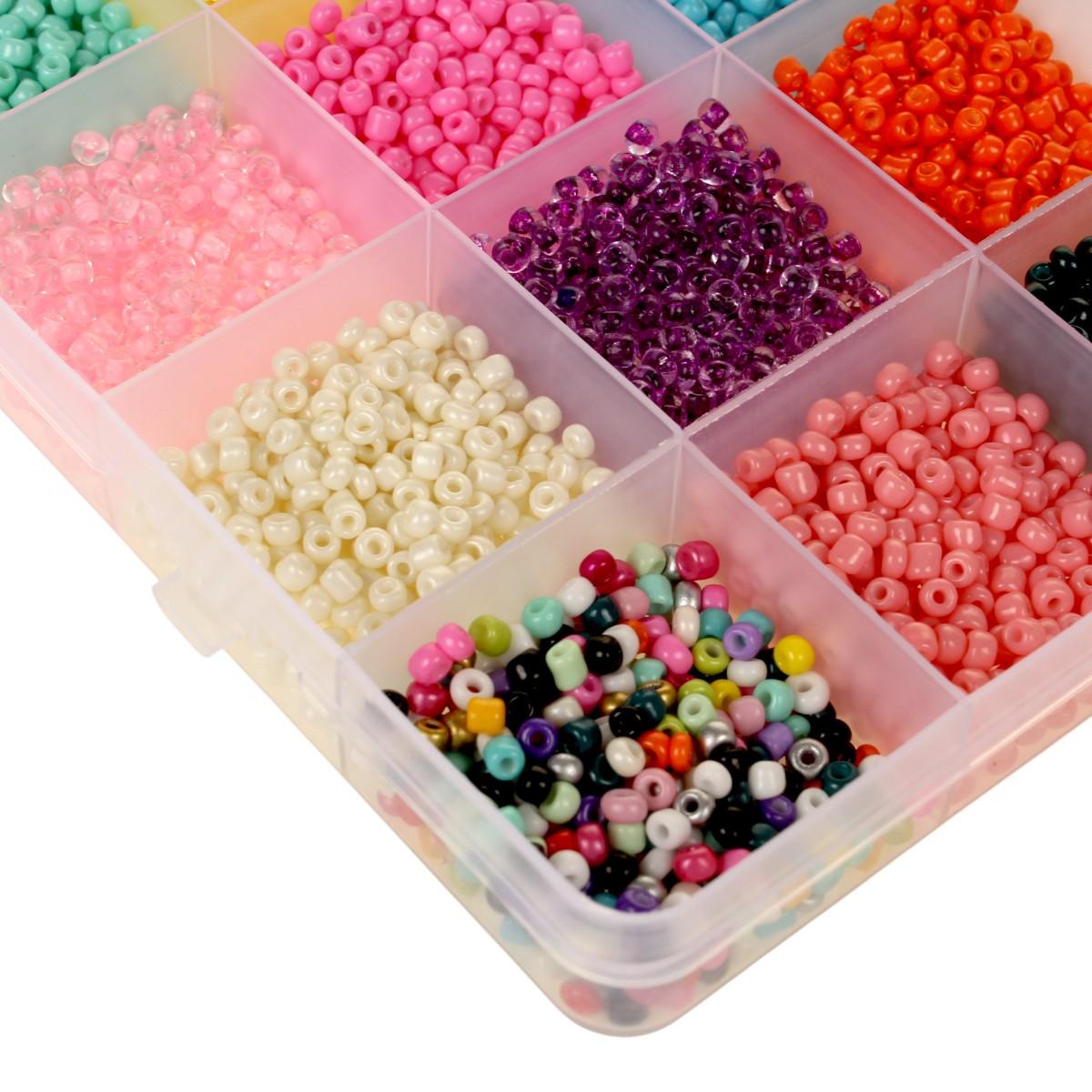 Набор включает в себя множество цветных бусин, которые удобно упакованы в прозрачный контейнер с ячейками. Каждая ячейка содержит бусины различных форм и цветов, что позволяет создавать разнообразные комбинации. Набор подходит для девочек от 5 лет и старше, и станет отличным подарком на день рождения или любой другой праздник.