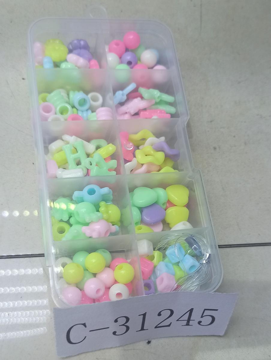 - 200+ пластиковых бусин 6 цветов: розовый, фиолетовый, голубой, желтый, зеленый, белый