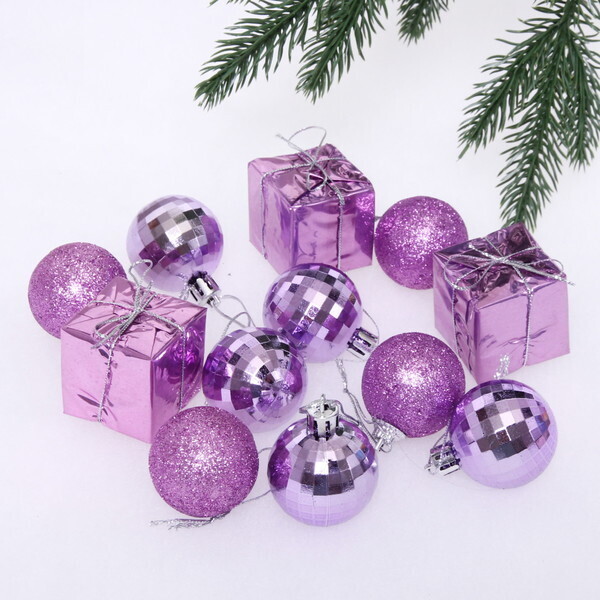 Этот набор украшений станет идеальным дополнением к вашему новогоднему декору. Сочетание фиолетовых оттенков и разнообразных форм придаст вашему дому уют и волшебство. Украшения выполнены из качественного пластика, что обеспечивает их долговечность и надежность. Они легко крепятся и могут использоваться как для украшения елки, так и для декорирования подарков или праздничного стола.