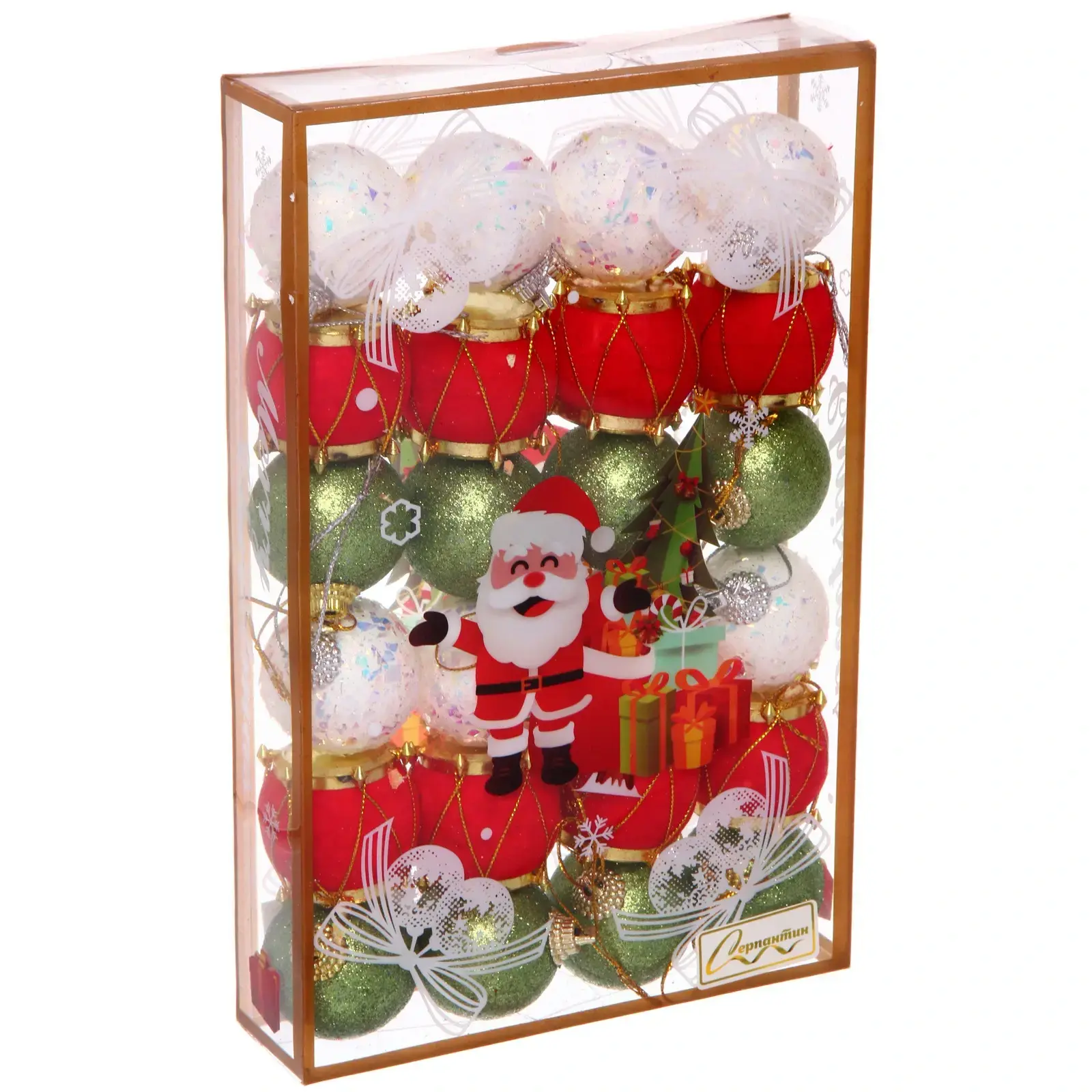 Набор новогодних украшений 'Экзотика' 24 шт, диаметр 4 см, красный/белый/зеленый