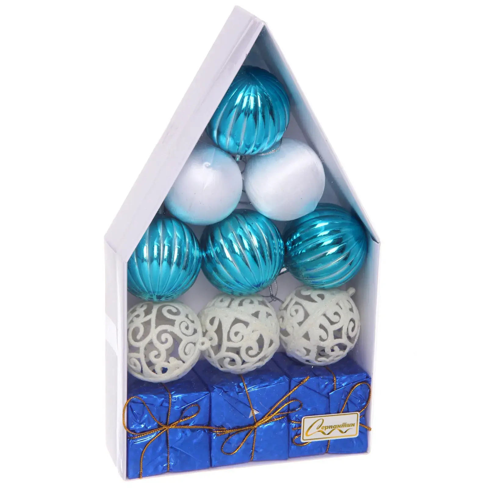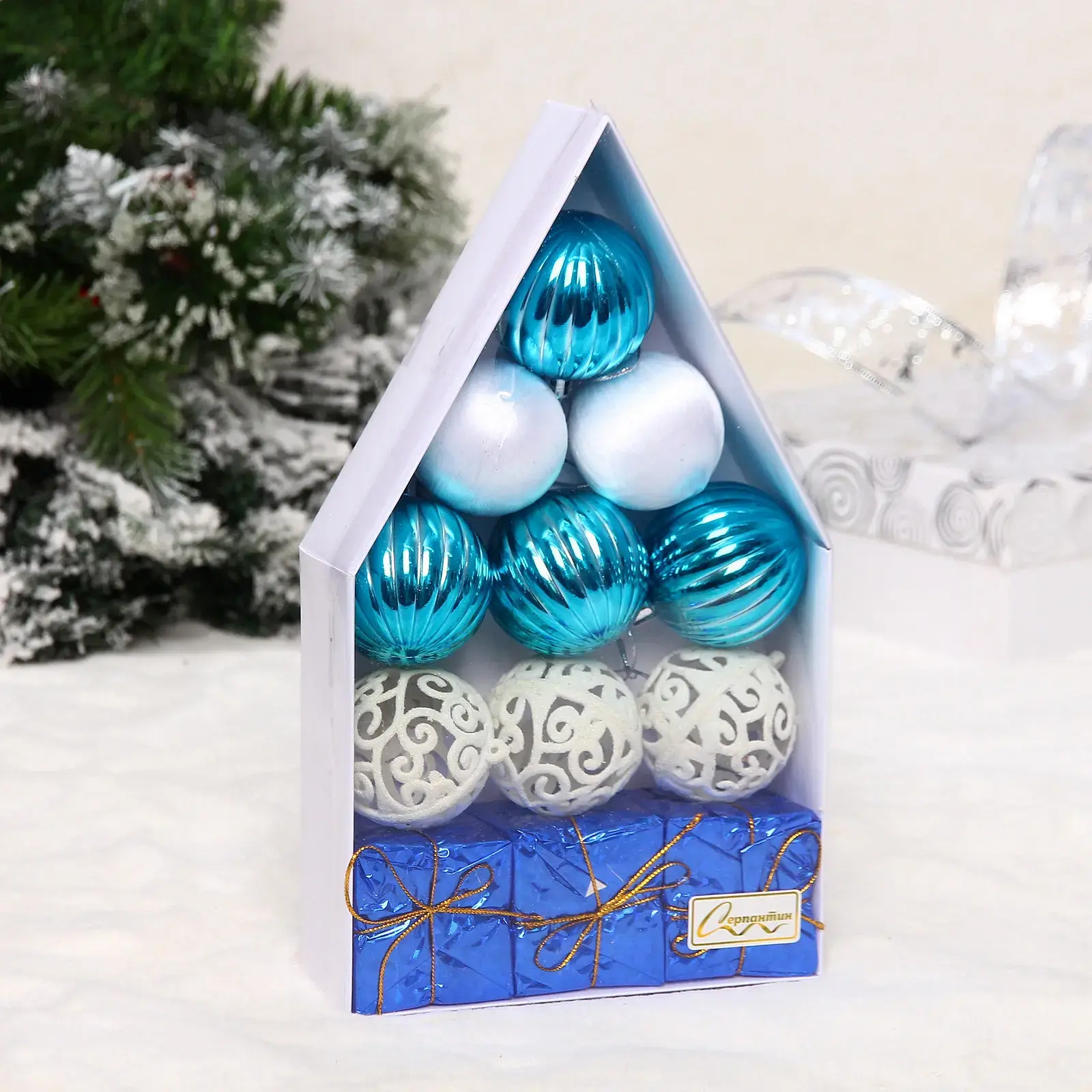 Превратите новогоднюю елку в настоящий шедевр декора с набором из 12 стильных игрушек. В каждой коробке-домике вы найдете идеальный баланс цветов и фактур, который добавит уюта вашему празднику.
