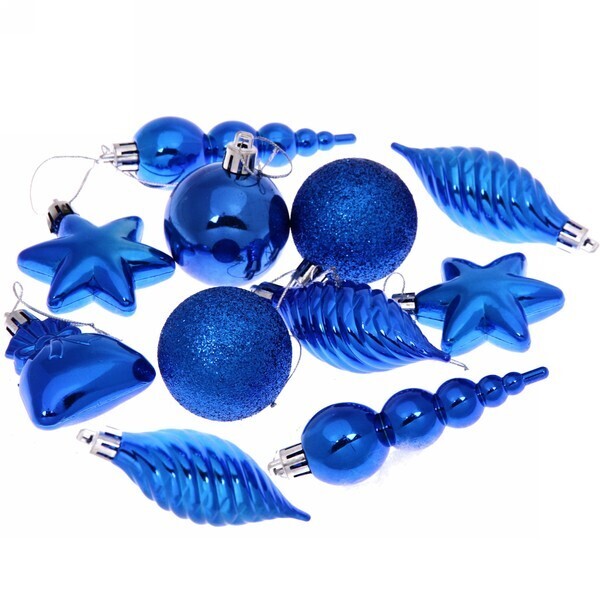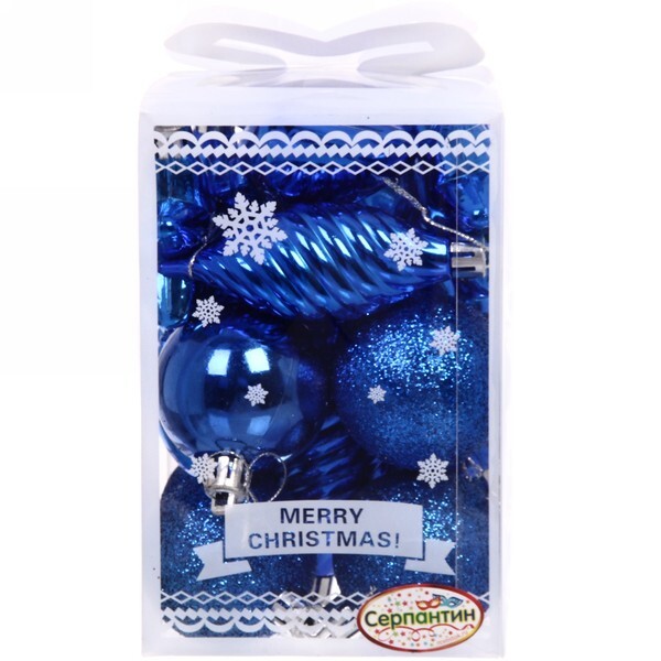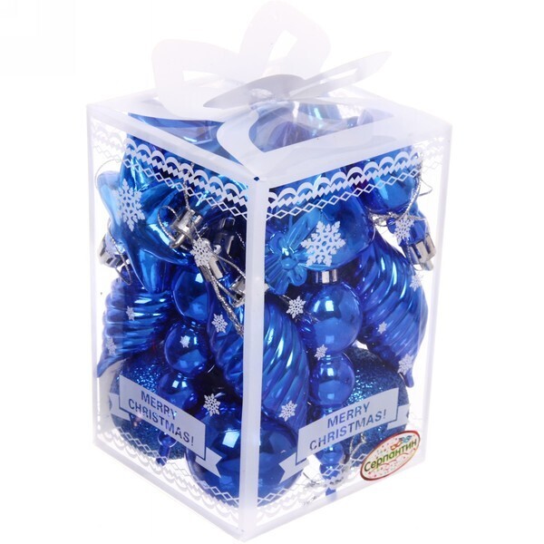 В набор входят 21 предмет, каждый из которых отличается уникальным дизайном и цветом. Игрушки варьируются от яркого синего до темно-синего, с блестящей и матовой текстурами. Упаковка выполнена из прозрачного материала, что позволяет увидеть все украшения и оценить их красоту еще до распаковки. Набор станет отличным подарком для друзей и близких, а также прекрасным дополнением к вашему новогоднему декору.