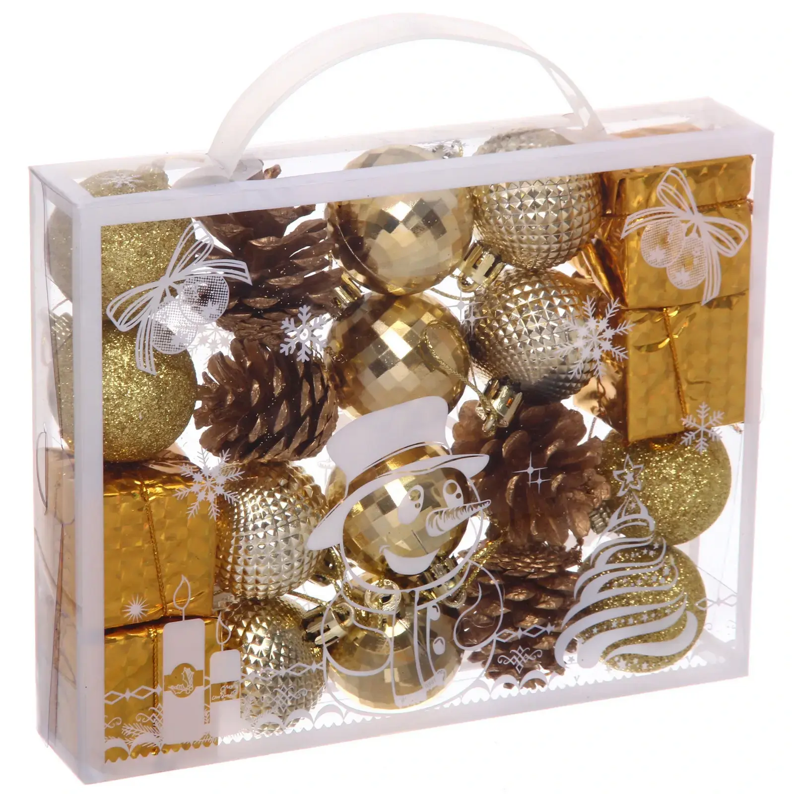 Набор новогодних украшений «Карнавал» 4 см, шары/шишки/коробки, золото/шампань