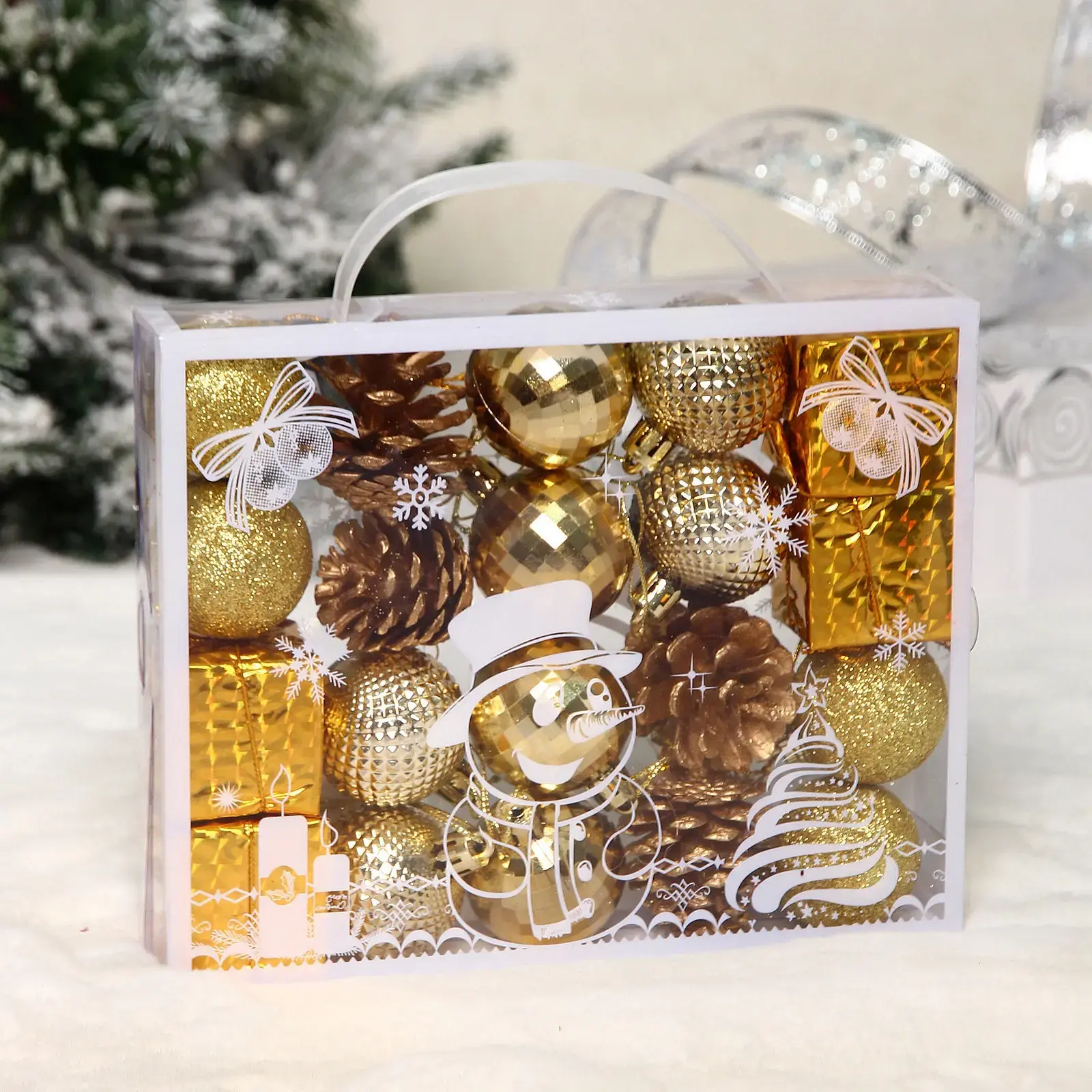 Комбинируйте текстуры: глянцевые поверхности отражают свет гирлянд, матовые элементы добавляют глубины композиции. Набор сохраняет вид при температуре от -15°C до +40°C — подходит для балконов и уличных декоров.