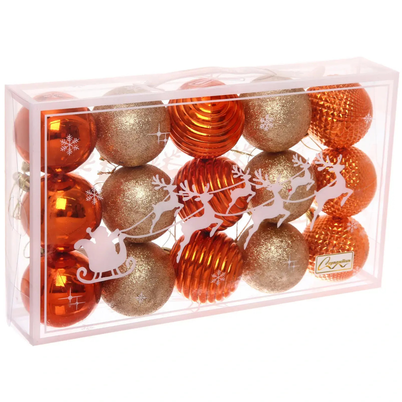 Внимание: в набор входит 15 шаров двух оттенков (янтарь и шампань) диаметром 6 см каждый. Материал: высококачественный пластик. Производитель: Hua Sheng Industrial Co.,LTD (Китай).