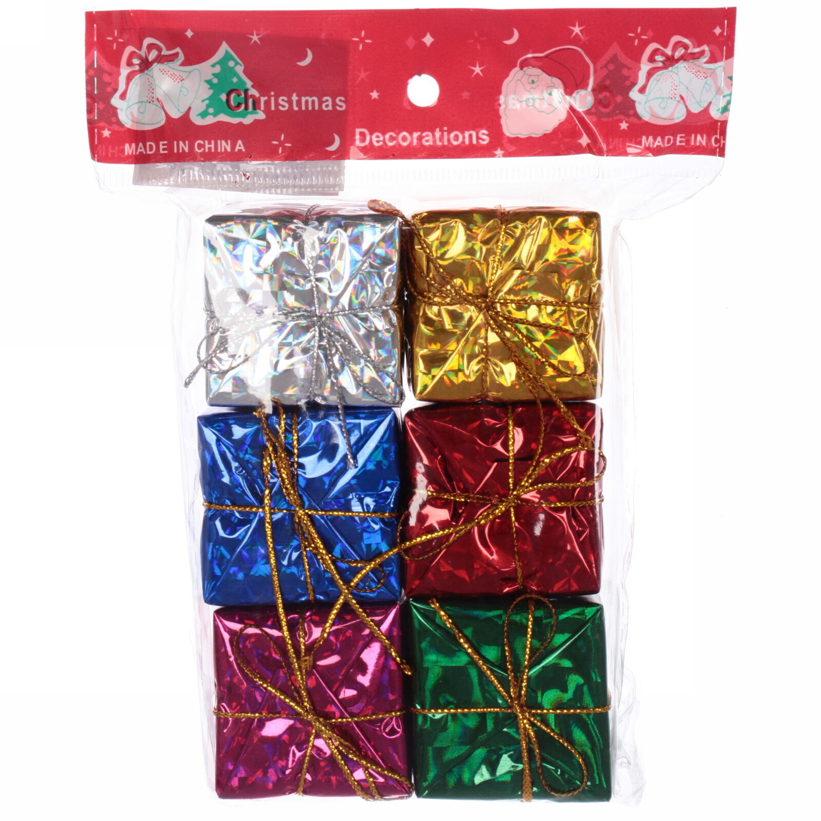 Набор новогодних украшений 'Подарки', 6 шт, 3.8см, пенопласт/пластик