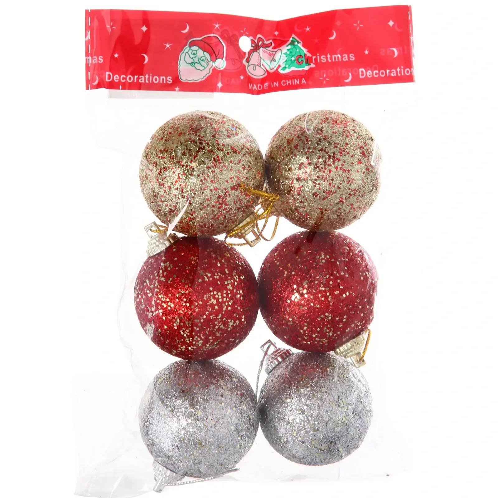 Набор новогодних шаров "Игра в снежки" 5см, 6шт, красный/золото/серебро, пенопласт