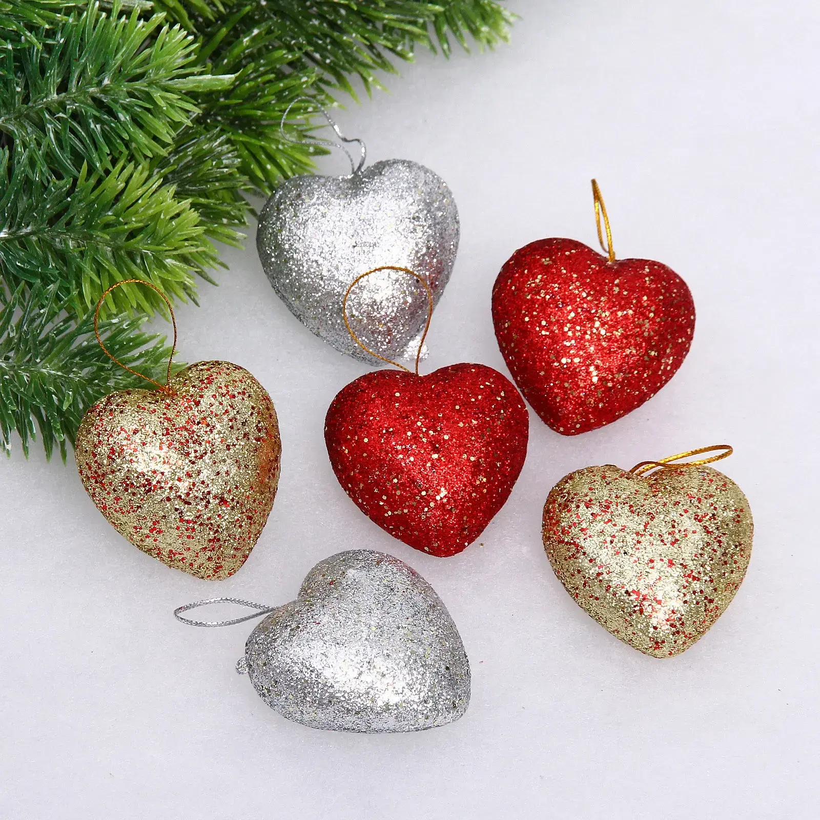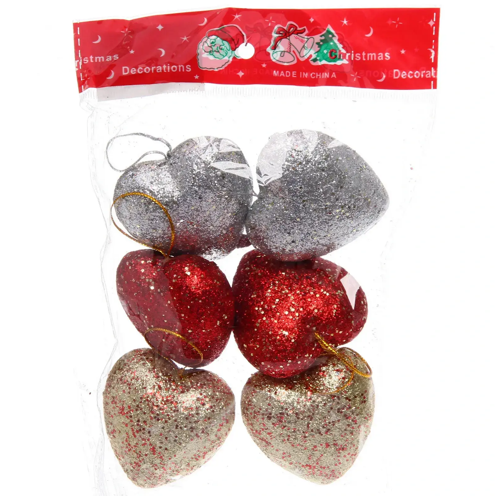 Набор украшений 'Искрометное сердце' 6 шт, 5.5см, красный/золото/серебро