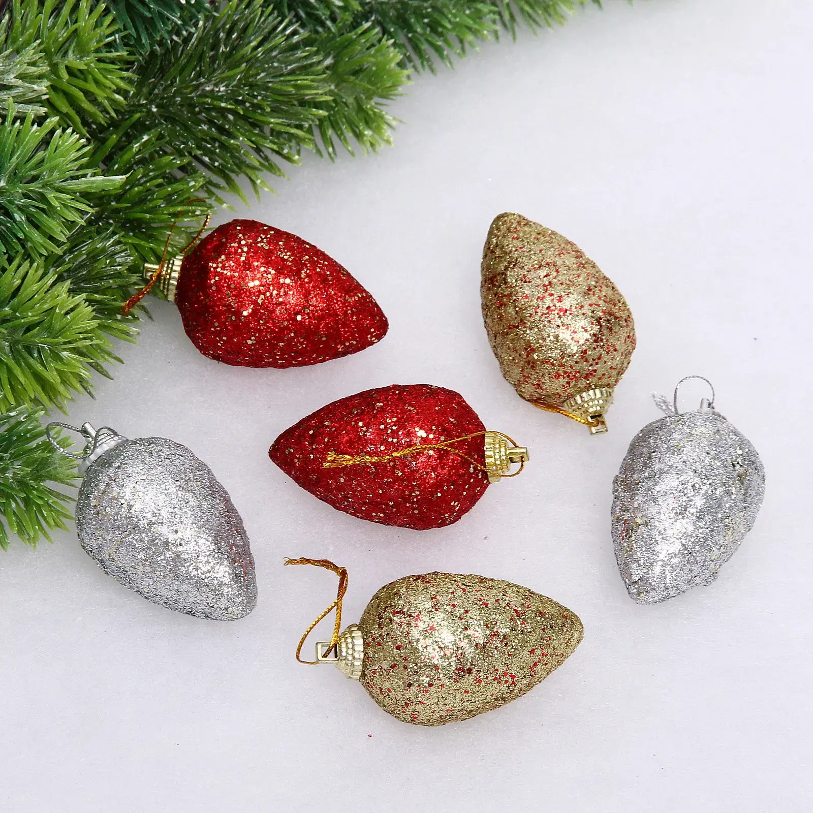 - Комплект из 6 штук позволяет равномерно украсить всю ёлку
