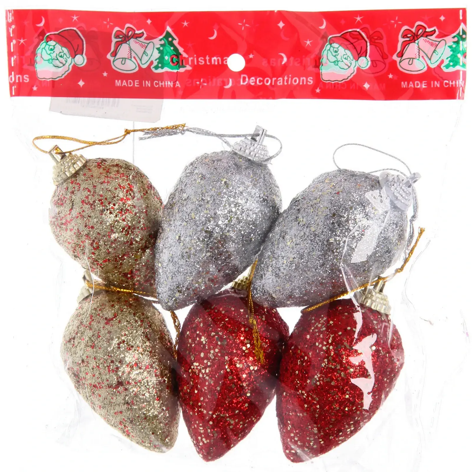 Набор ёлочных игрушек "Зачарованные шишки" 6 шт, 6.5*4 см, красный/золото/серебро