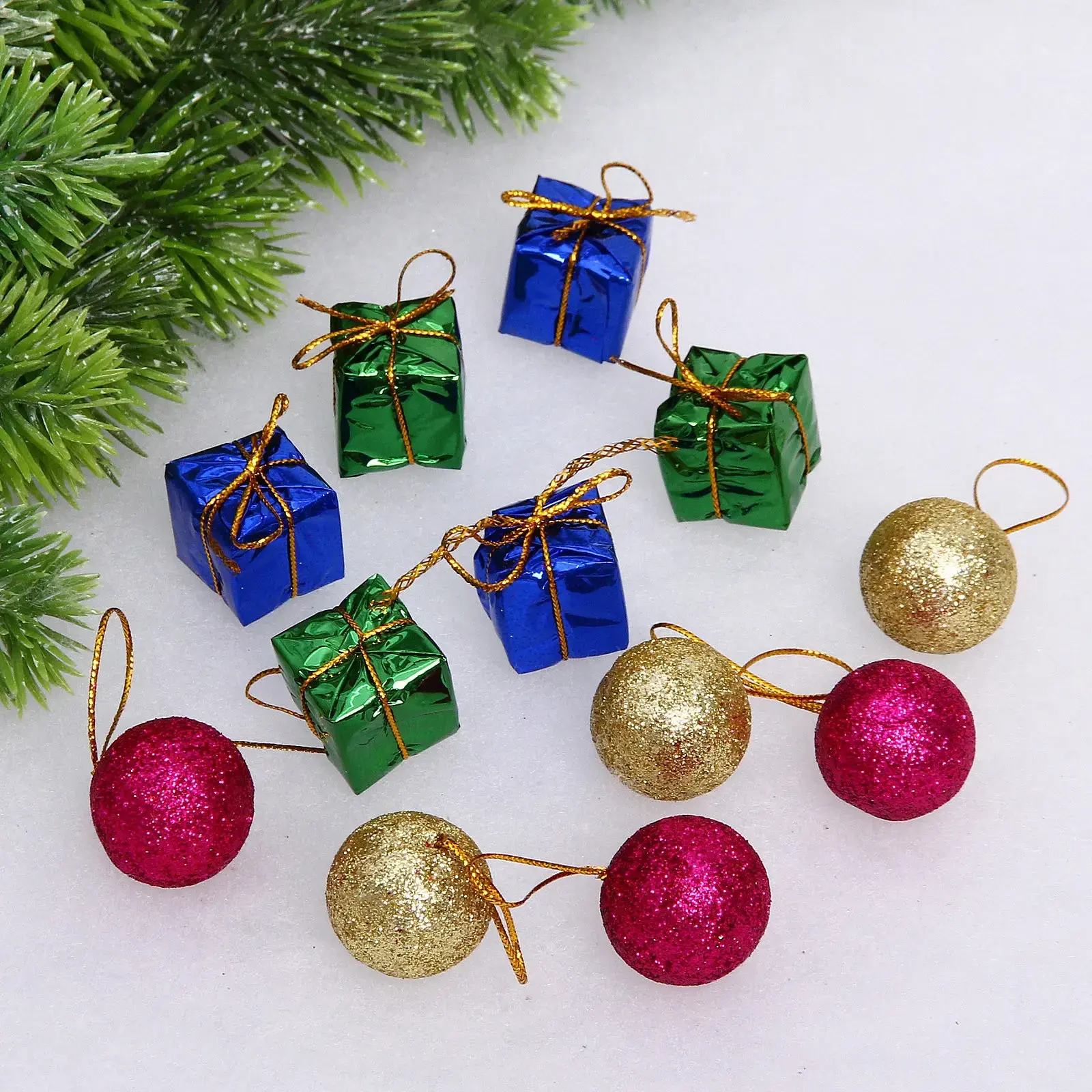 Набор из 12 элементов превратит ваш дом в зимнюю сказку! Шары с глиттерным покрытием и подарочные коробки с золотым декором идеально подчеркнут новогоднее настроение.
