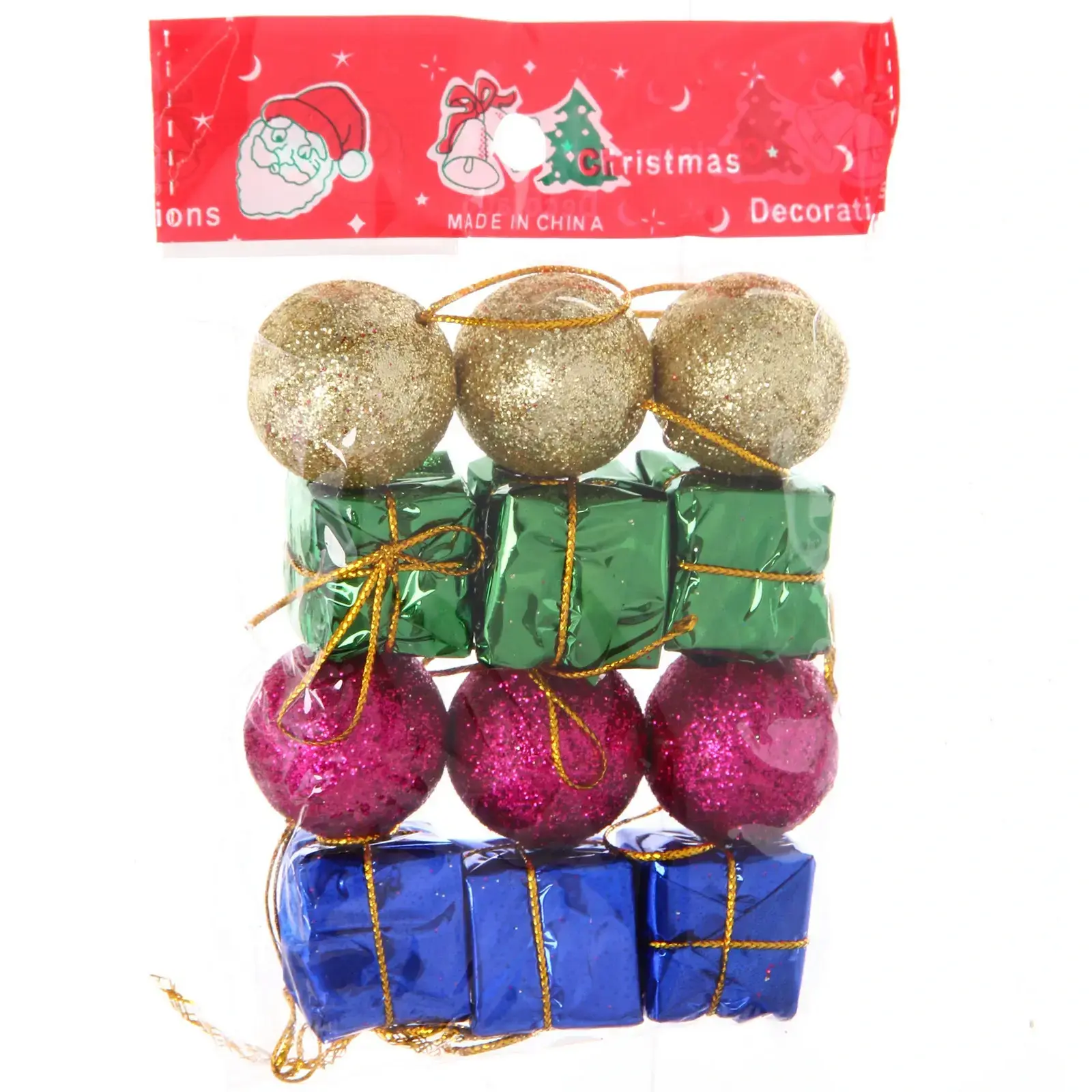 Набор новогодних украшений «Рождественский» 12 предметов, шары и коробки, 9х11 см, микс цветов