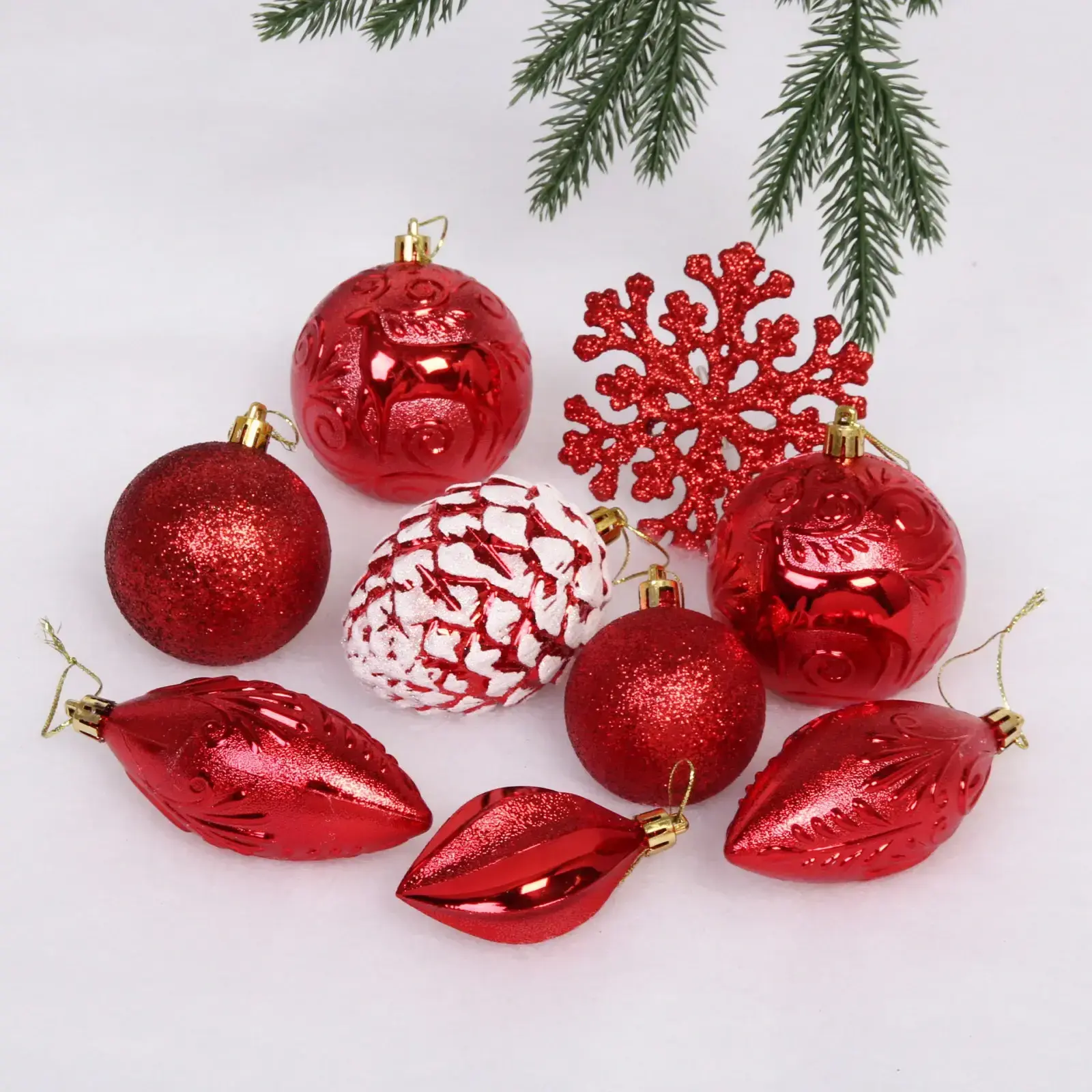 Набор украшений «Рождество» — это идеальное решение для тех, кто хочет добавить яркие акценты в праздничное оформление. С этим набором вы сможете легко и быстро украсить свою елку или создать праздничное настроение в любом уголке вашего дома. Красный цвет украшений создает теплую и уютную атмосферу, а разнообразие форм и текстур добавляет интерес и оригинальность.