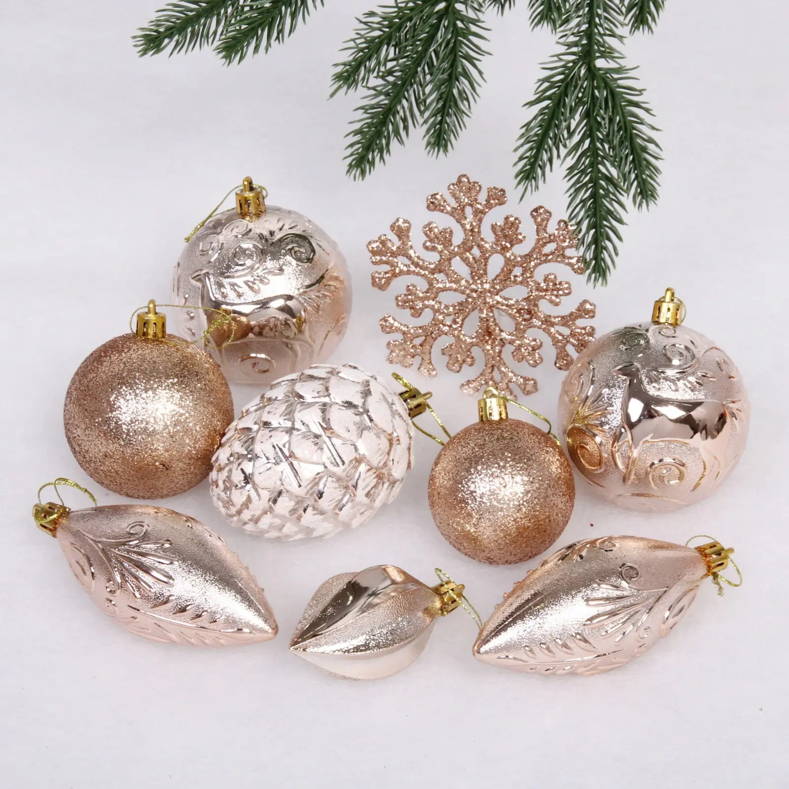Волшебный набор из 26 украшений превратит вашу елку в центр праздничного интерьера. Благородные оттенки шампань и золото создают элегантный ансамбль, который порадует даже самого взыскательного декоратора.