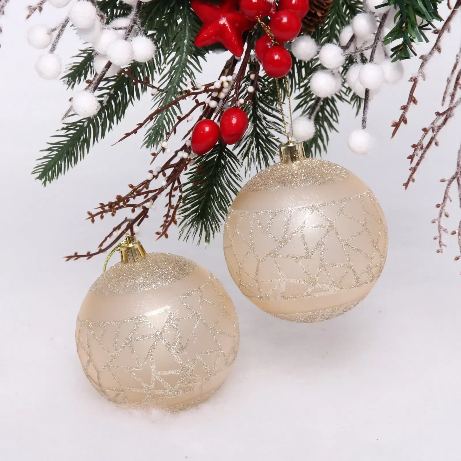 Шары изготовлены из прочного пластика с декоративным глиттерным покрытием. Каждый элемент поставляется в защитной прозрачной упаковке, что гарантирует сохранность при хранении.