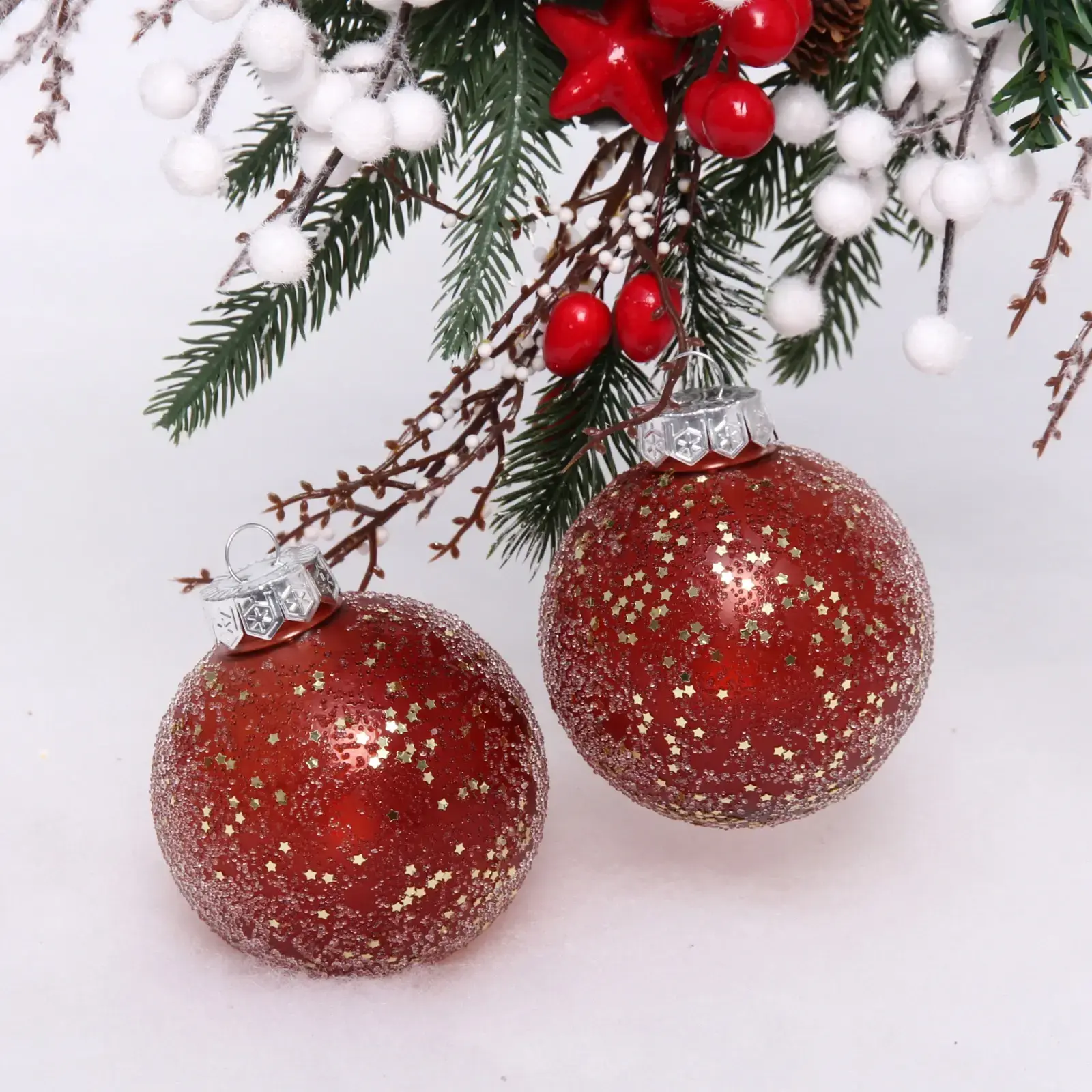 Погрузитесь в атмосферу праздника с набором украшений SHINE «Diamond Sand». Эти изысканные шары, выполненные в ярко-красном цвете и покрытые золотыми блестками, добавят элегантности и стиля вашей новогодней елке. Каждый шар диаметром 8 см украшен блестящей крошкой, переливающейся на свету, создавая эффект россыпи бриллиантов. С таким декором ваша елка станет настоящим произведением искусства!