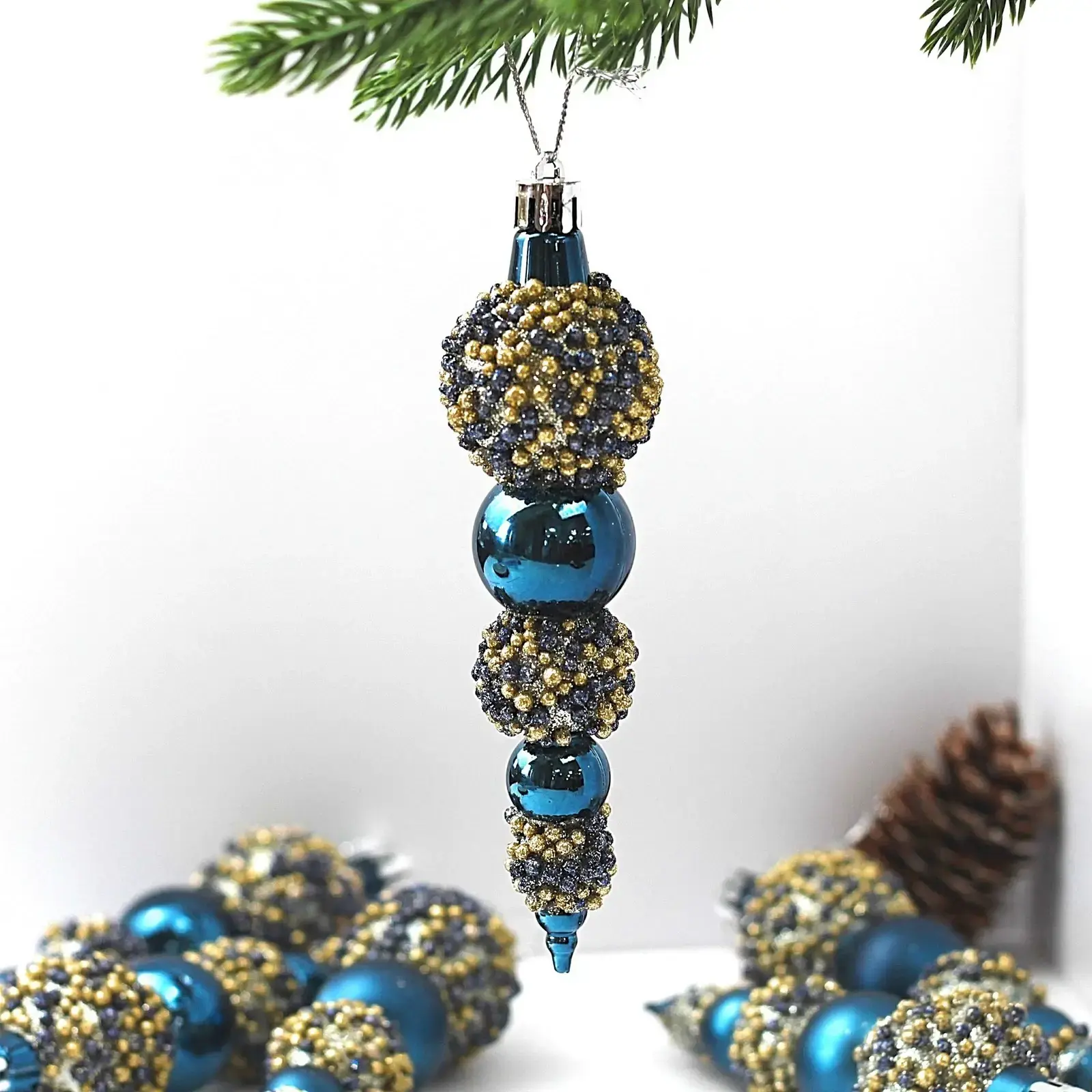 Погрузитесь в атмосферу праздника с набором украшений SHINE «Fairy tale». Эти изысканные украшения, выполненные в ночном синем цвете, добавят вашему новогоднему декору особый шарм и элегантность. Каждое украшение покрыто блестящей крошкой, которая переливается на свету, создавая эффект россыпи бриллиантов. С таким декором ваша елка станет настоящим произведением искусства!