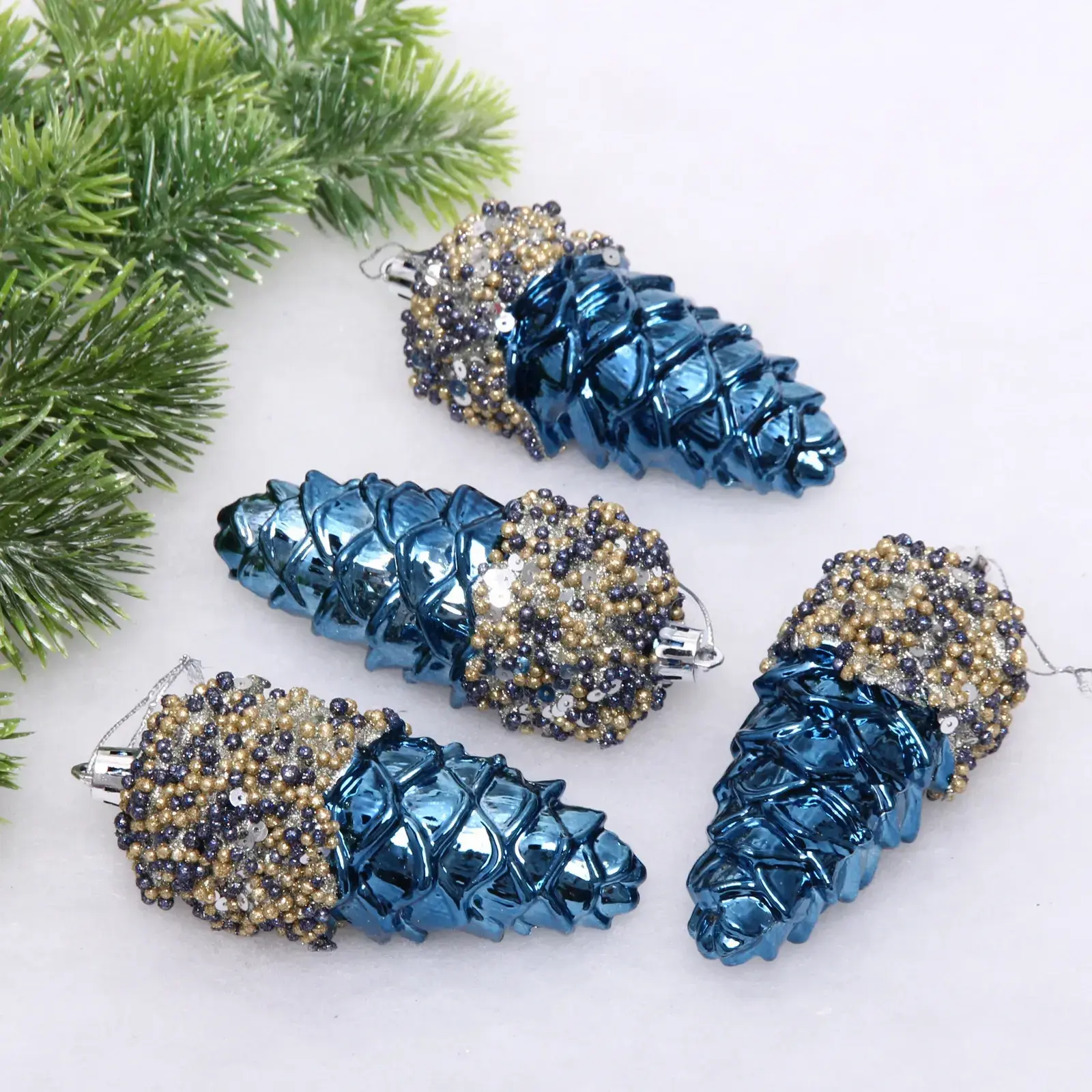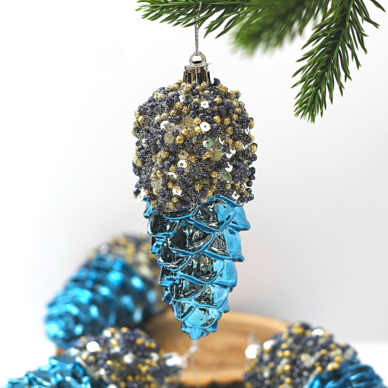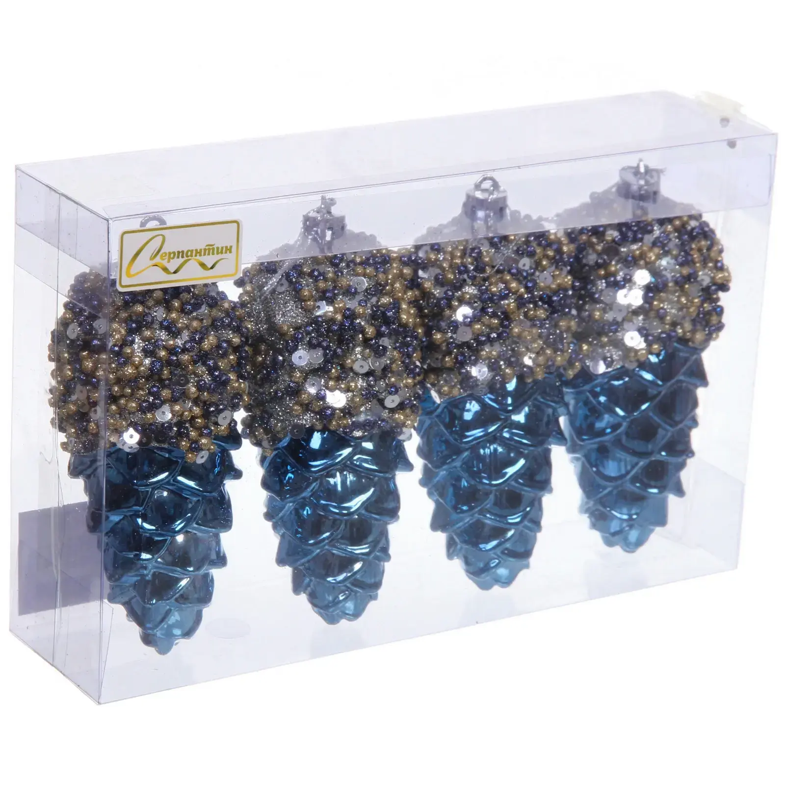 Эти украшения идеально подходят для декорирования новогодней елки, а также могут использоваться для создания праздничного настроения в любом интерьере. Набор состоит из четырех игрушек в форме шишек, которые легко подвешиваются благодаря металлическим креплениям. Они прекрасно смотрятся как в одиночном исполнении, так и в сочетании с другими элементами декора.