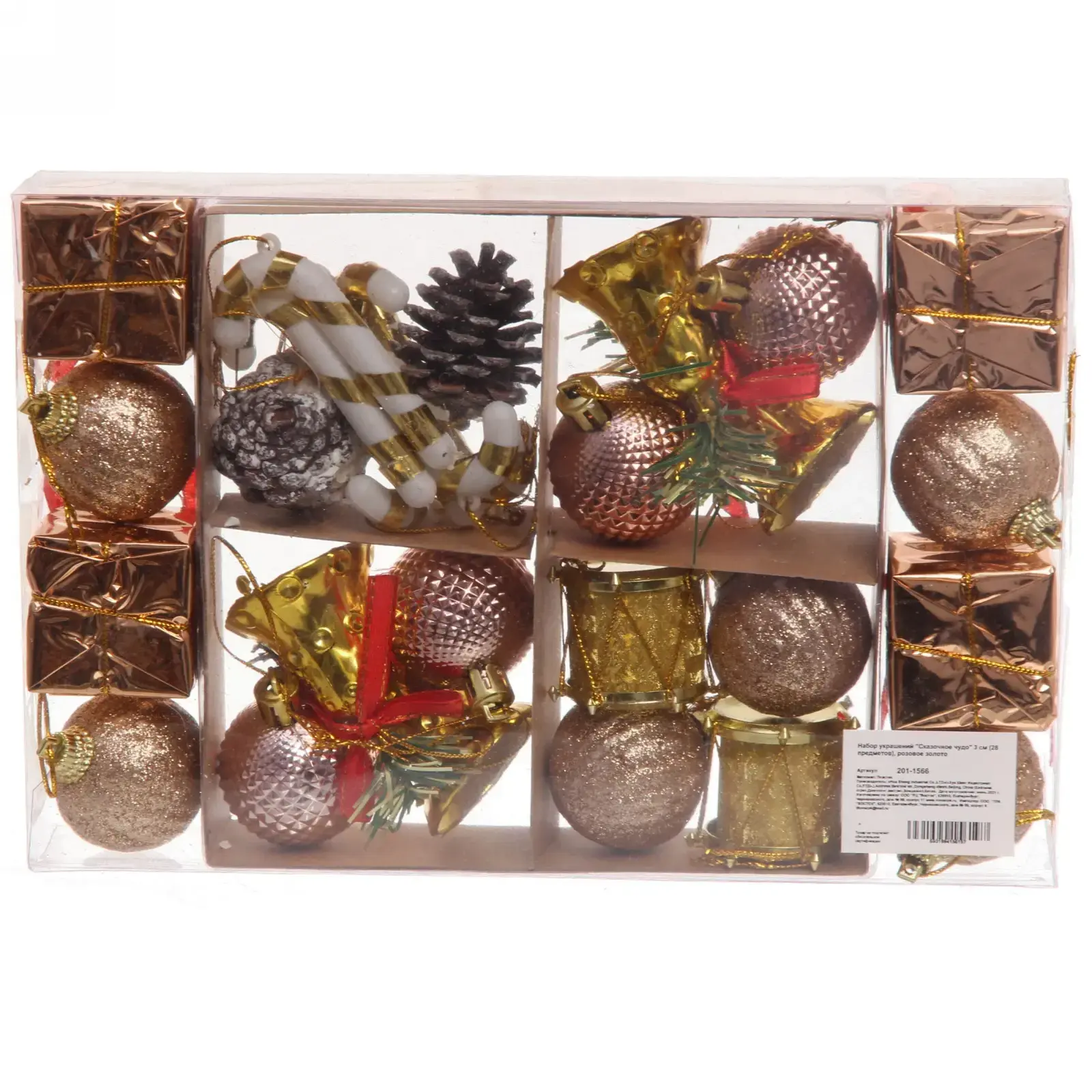 Погрузитесь в атмосферу праздника с набором украшений «Сказочное чудо». Этот набор, выполненный в нежных оттенках розового золота, станет идеальным дополнением для вашего новогоднего декора. Он включает 28 предметов, которые помогут вам создать уникальный и стильный интерьер, наполняя его теплом и уютом.