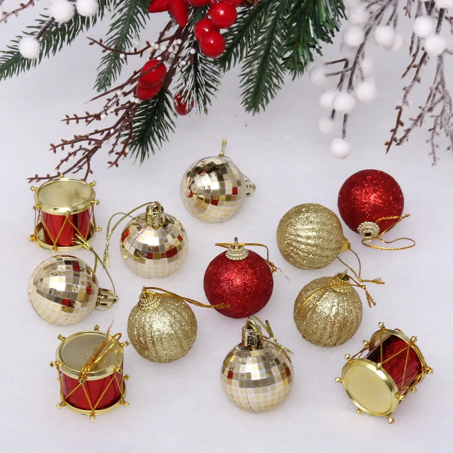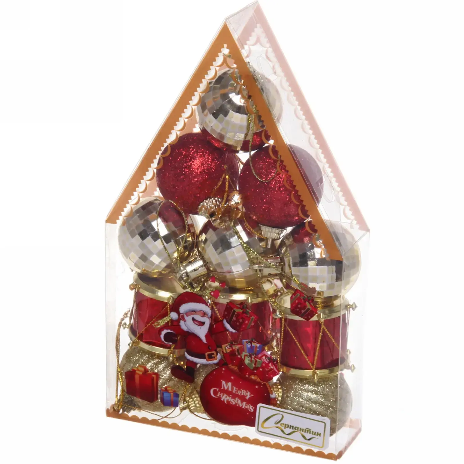 Набор новогодних украшений 'Сказочный домик', 12 предметов, пластик, красный/золотой, 20х12см
