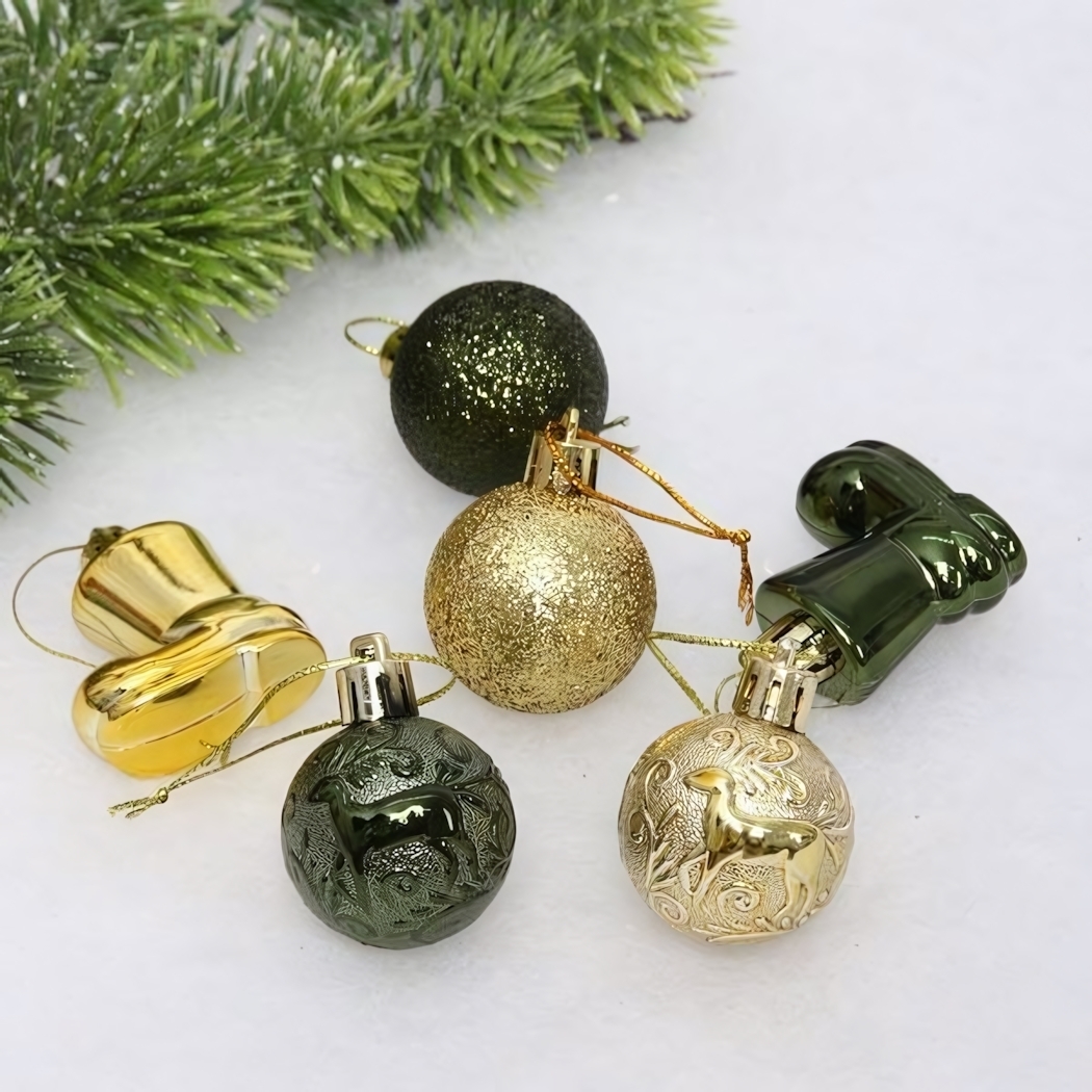 Превратите свою елку в настоящее произведение искусства с помощью комплекта из 13 уникальных украшений. Благородное сочетание изумрудного и золотого создаст роскошный праздничный декор.