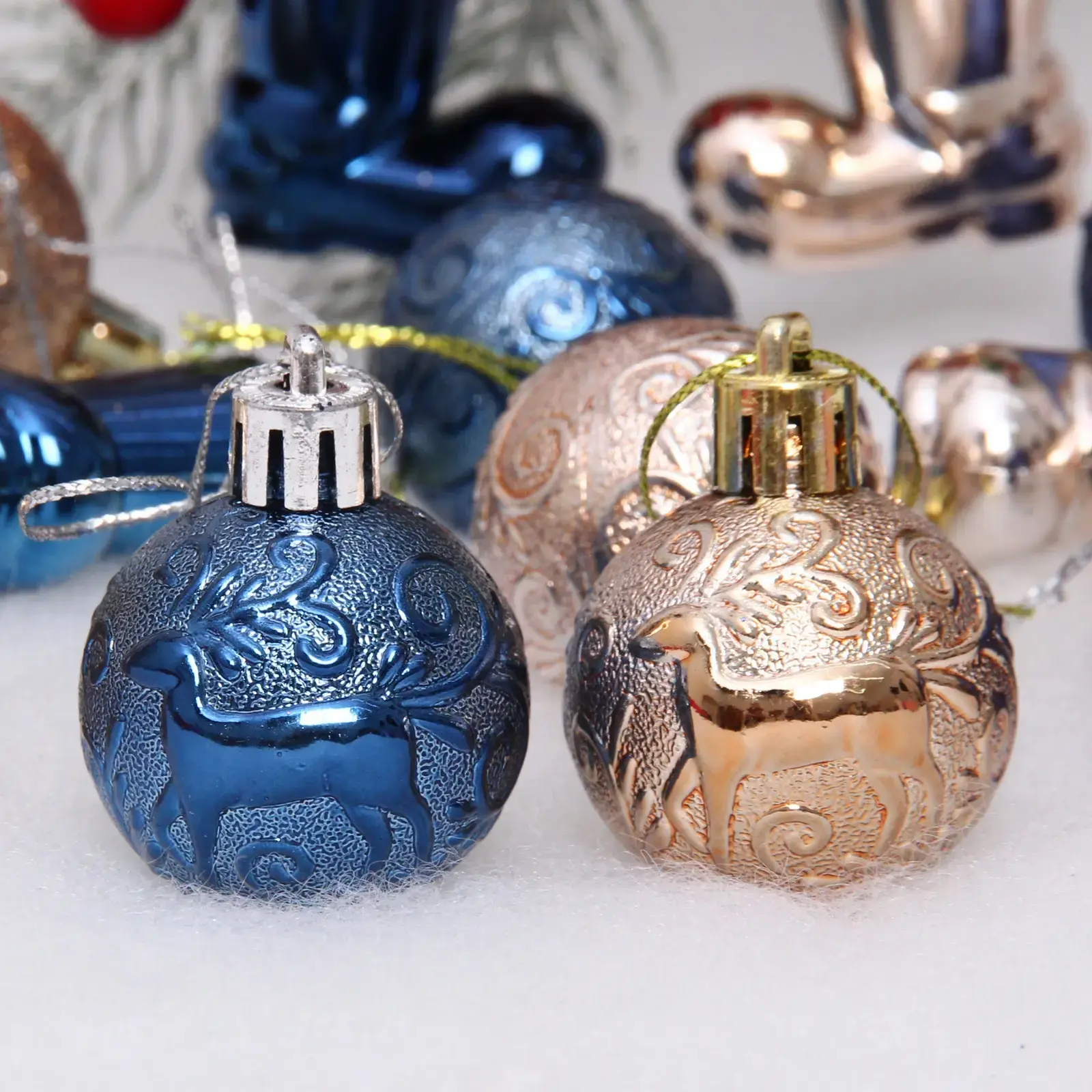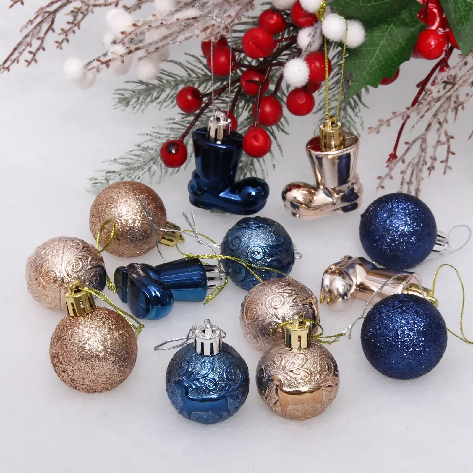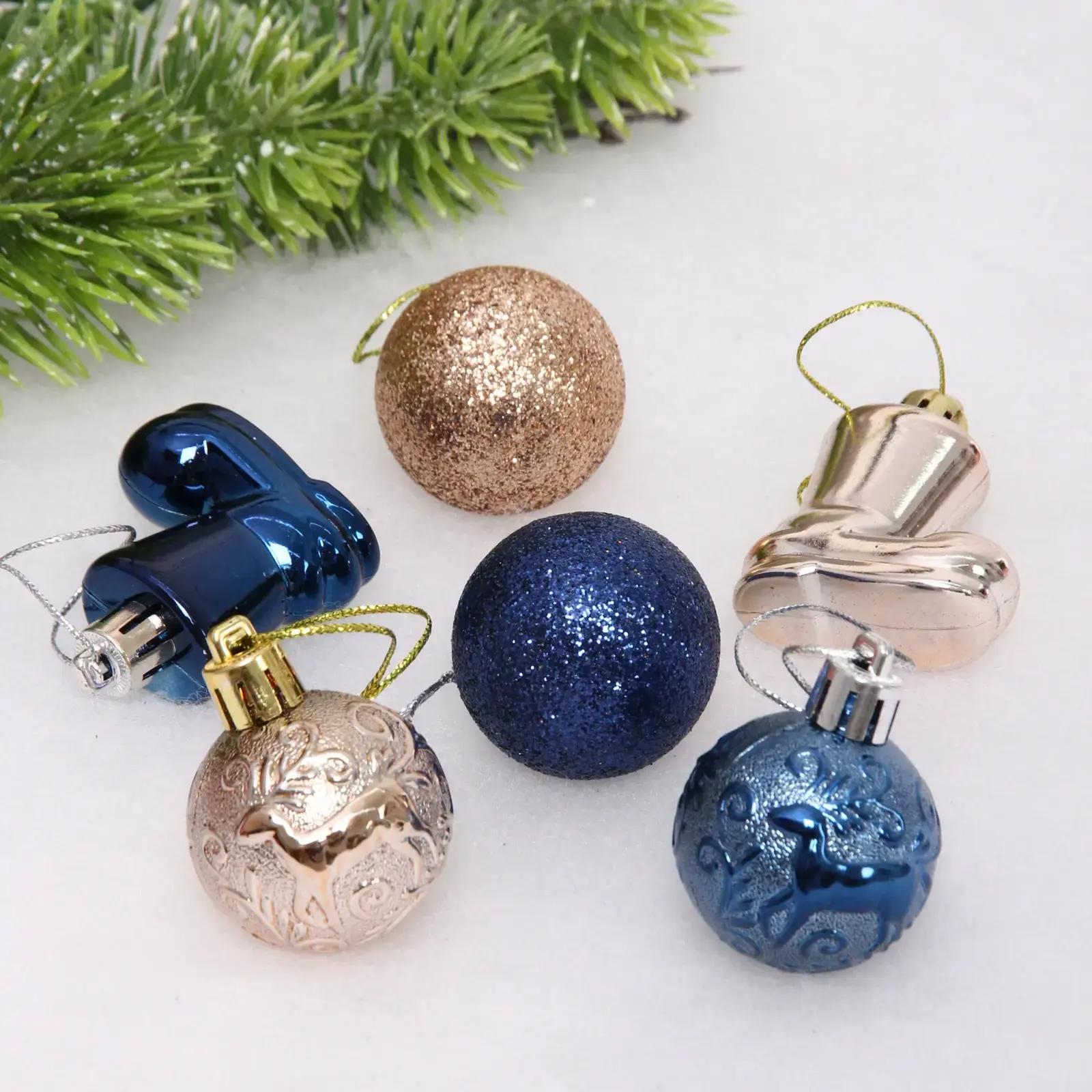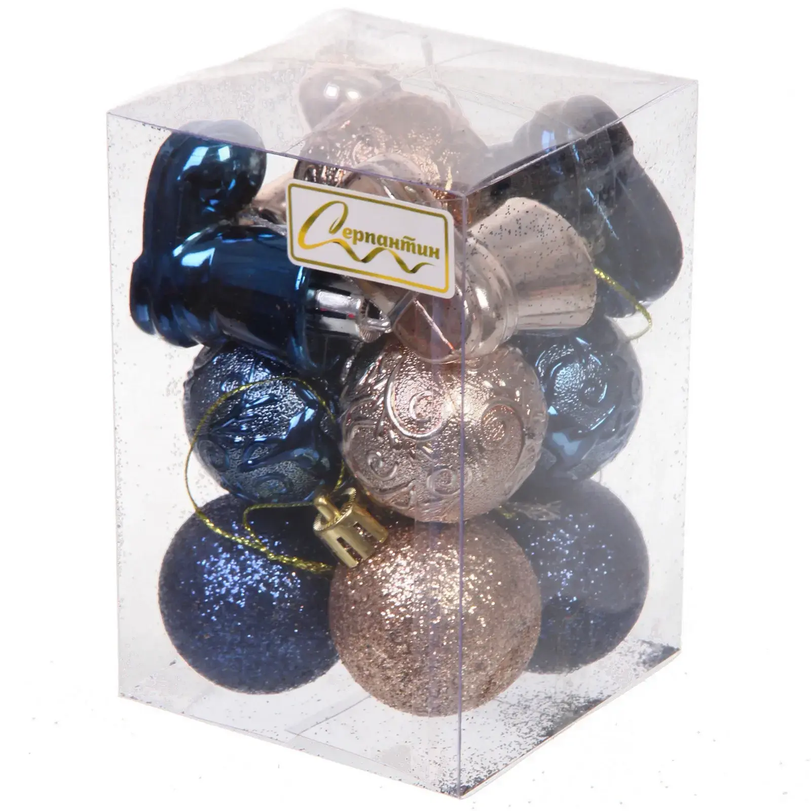 Набор состоит из 13 предметов, включая шары и фигурки, выполненные в различных цветах, таких как сапфир и шампань. Эти украшения идеально подходят для декорирования новогодней ёлки, а также могут использоваться для создания праздничных композиций на столе или в интерьере. Благодаря компактным размерам (4 см), они легко вписываются в любой декор и не занимают много места.