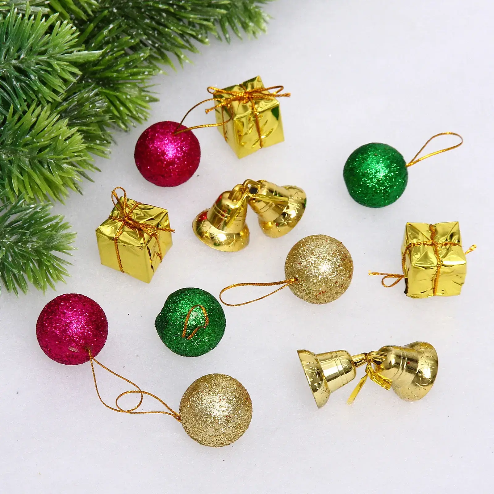 Украшения оснащены удобными подвесами из тонкой нити, что позволяет легко закрепить их на ветках или других поверхностях. Комбинация матовых и глиттерных текстур создает эффектный визуальный контраст.