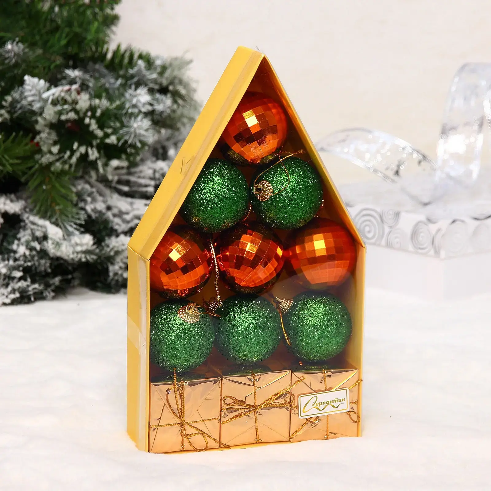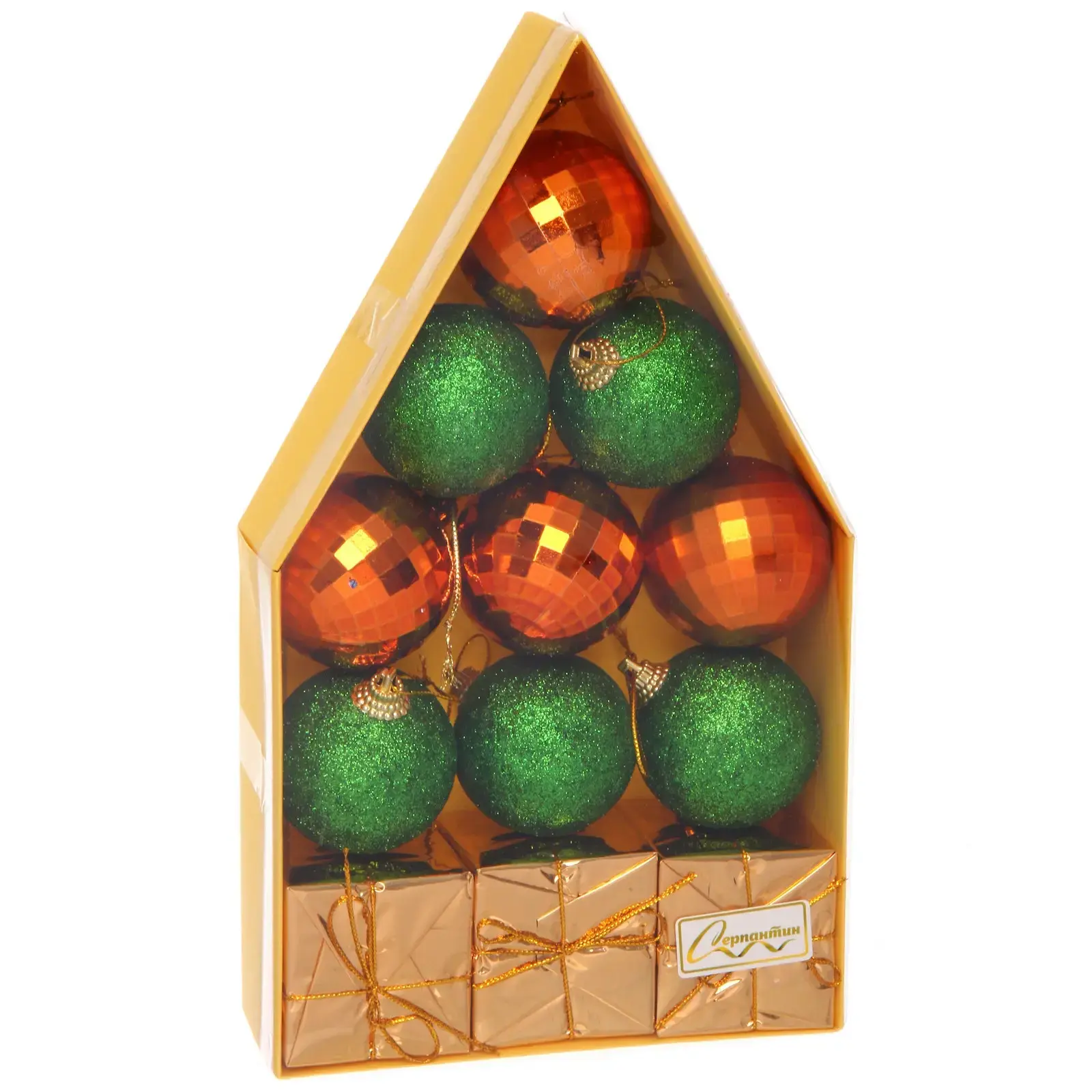 Набор новогодних шаров "Воздушный замок" 5 см, зеленый/оранжевый, пластик
