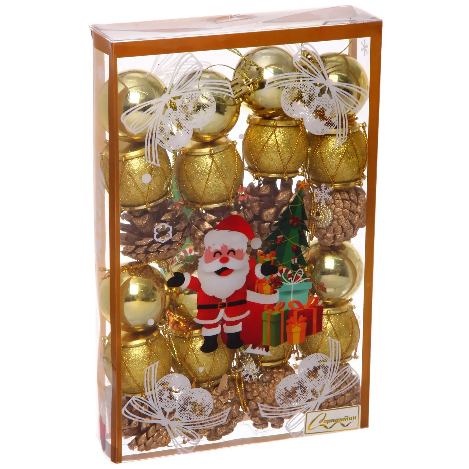 Набор из 24 золотых украшений станет идеальным решением для декора вашей новогодней елки и дома. Каждый элемент набора тщательно продуман, чтобы создать по-настоящему волшебное настроение.