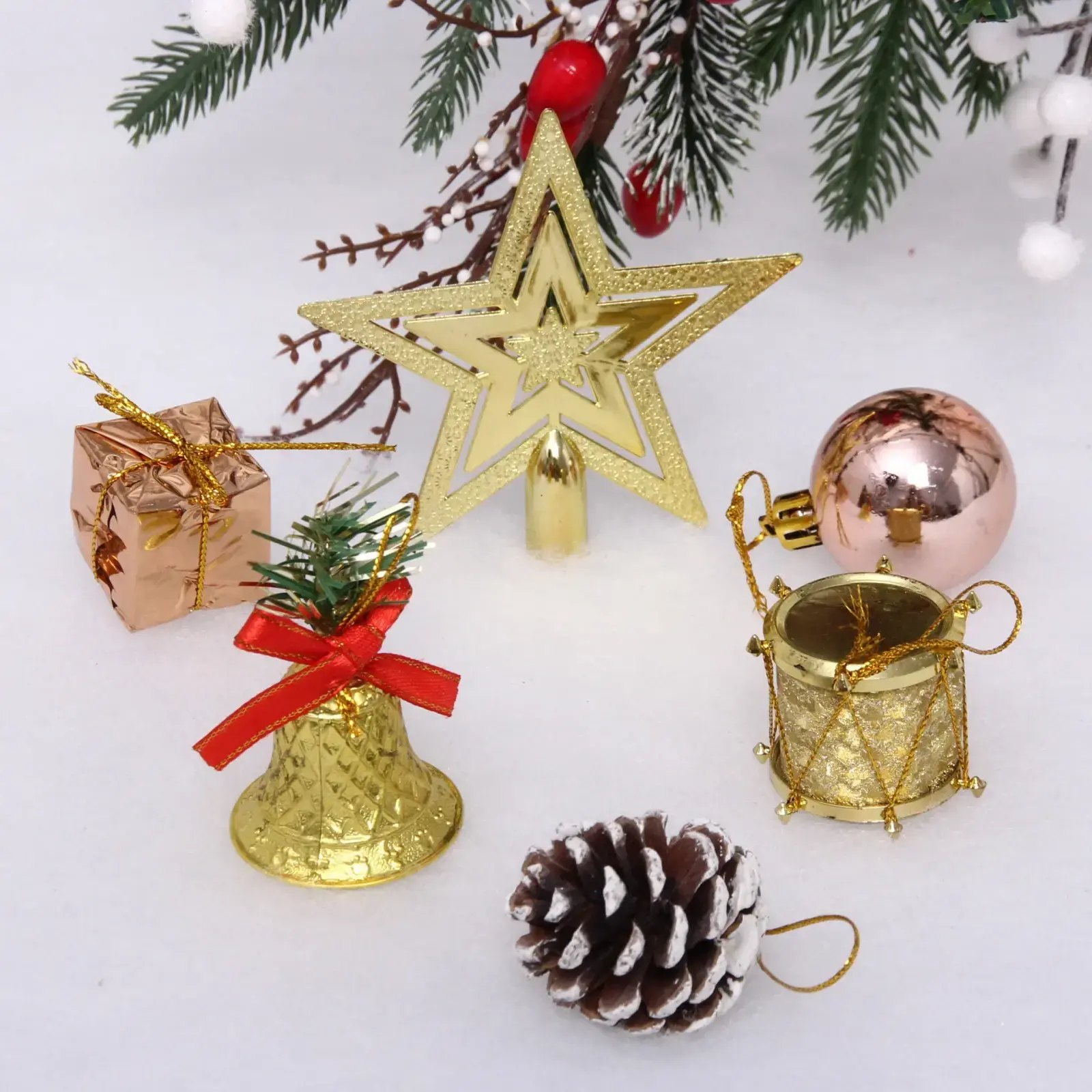 Создайте волшебную атмосферу праздника с 30 элементами декора в золотых и розовых тонах. Идеальное решение для оформления елки, интерьера или праздничного стола.