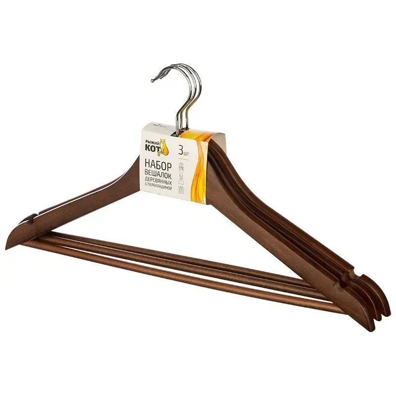 Набор вешалок деревянных с перекладиной, 3 шт, темно-коричневый, прочные и надежные