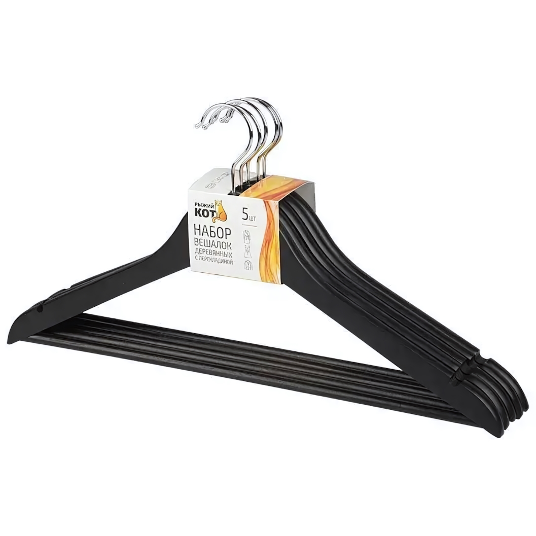 Набор вешалок деревянных с перекладиной, 5 шт, черный, для аккуратного хранения одежды