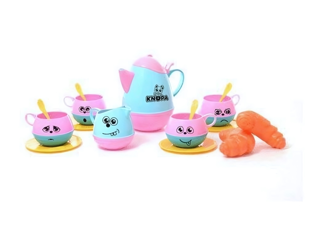 Игровой набор выполнен из прочного пластика, безопасного для детей. Яркие цвета (розовый и голубой) и забавные лица на посуде создают праздничное настроение и стимулируют воображение.