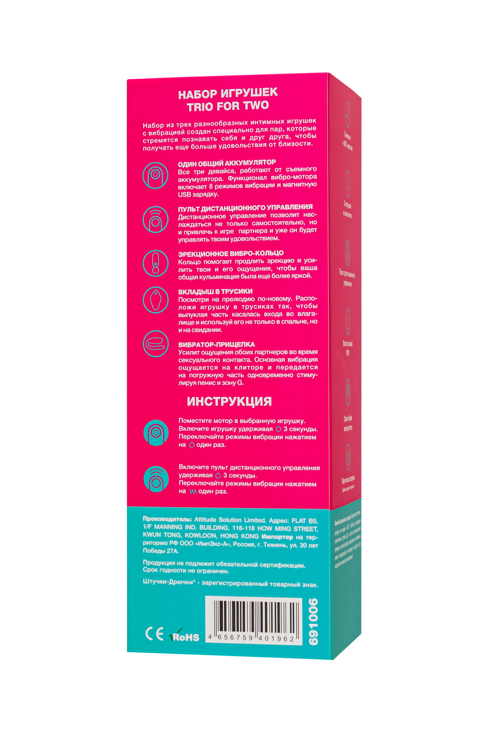 Погрузитесь в мир наслаждений с набором 'Trio for two' – вашим проводником в мир ярких ощущений для пар. Три уникальных устройства с вибрацией подарят незабываемые моменты и усилят чувственность.