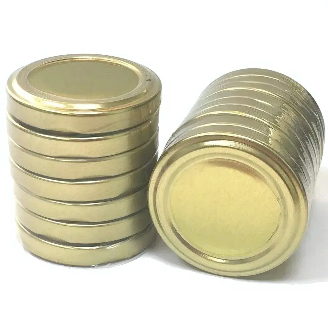 Каждая крышка имеет стандартный диаметр 53 мм, что делает их совместимыми с большинством консервных банок. Золотистый цвет и лаковое покрытие защищают крышки от окисления, что обеспечивает долговечность и надежность в использовании. Упаковка в прозрачной пленке позволяет удобно хранить крышки и защищает их от загрязнений.