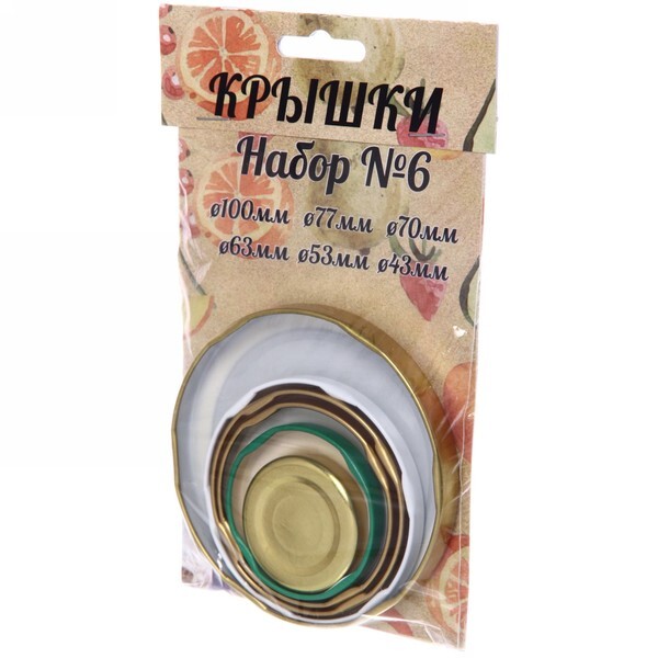 Крышки подходят для различных банок и идеально подходят для домашнего консервирования. Они легко устанавливаются и снимаются, что делает процесс заготовки простым и удобным. Набор включает крышки диаметром 43мм, 53мм, 63мм, 70мм, 77мм и 100мм, что позволяет вам выбрать подходящий размер для любого типа банки.