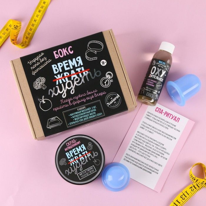 Набор «Время худеть» подходит для всех, кто хочет улучшить контуры своего тела и избавиться от целлюлита. Вакуумные банки стимулируют кровообращение и способствуют выведению токсинов, массажер помогает расслабить мышцы и улучшить тонус кожи, а скраб и масло обеспечивают глубокое увлажнение и питание. Используйте набор в домашних условиях, следуя простым инструкциям, и наслаждайтесь результатами.
