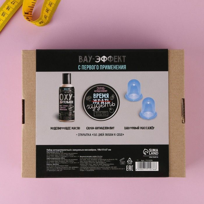 Погрузитесь в мир заботы о себе с набором «Время худеть». Этот уникальный комплект включает вакуумные банки, массажер, скраб и масло для коррекции фигуры, что делает его идеальным выбором для тех, кто стремится к улучшению своей внешности и самочувствия. Каждый элемент набора создан для того, чтобы помочь вам достичь желаемых результатов, а также подарить моменты расслабления и удовольствия.