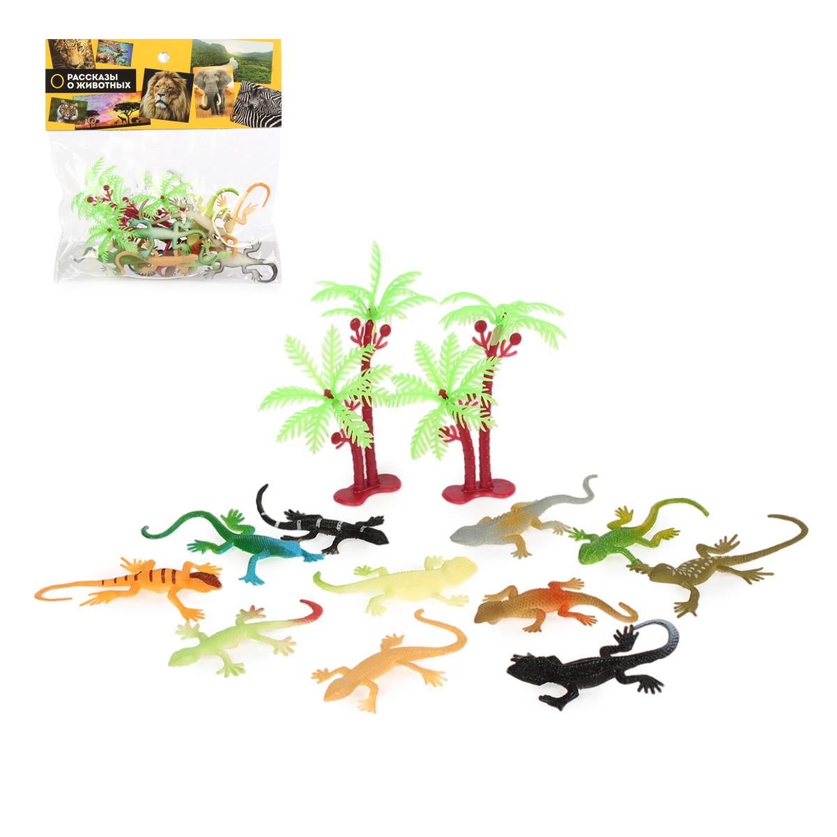Откройте мир животных для вашего ребенка с набором ящериц из серии 'Рассказы о животных'. Комплект включает 12 реалистичных фигурок и 2 пальмы для увлекательных игр.