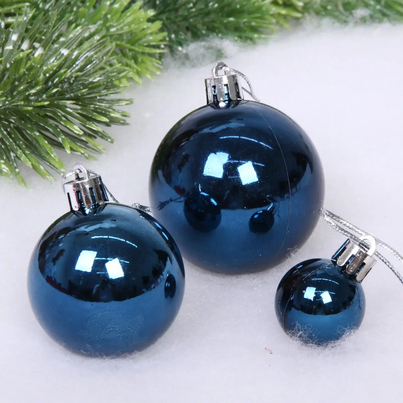 Этот набор включает в себя шары различных размеров и одну звезду, выполненные в темно-синих и голубых оттенках. Благодаря блестящей поверхности, украшения будут красиво переливаться на свету, создавая атмосферу праздника. Набор подходит для украшения как домашних ёлок, так и для создания праздничных композиций на столе.