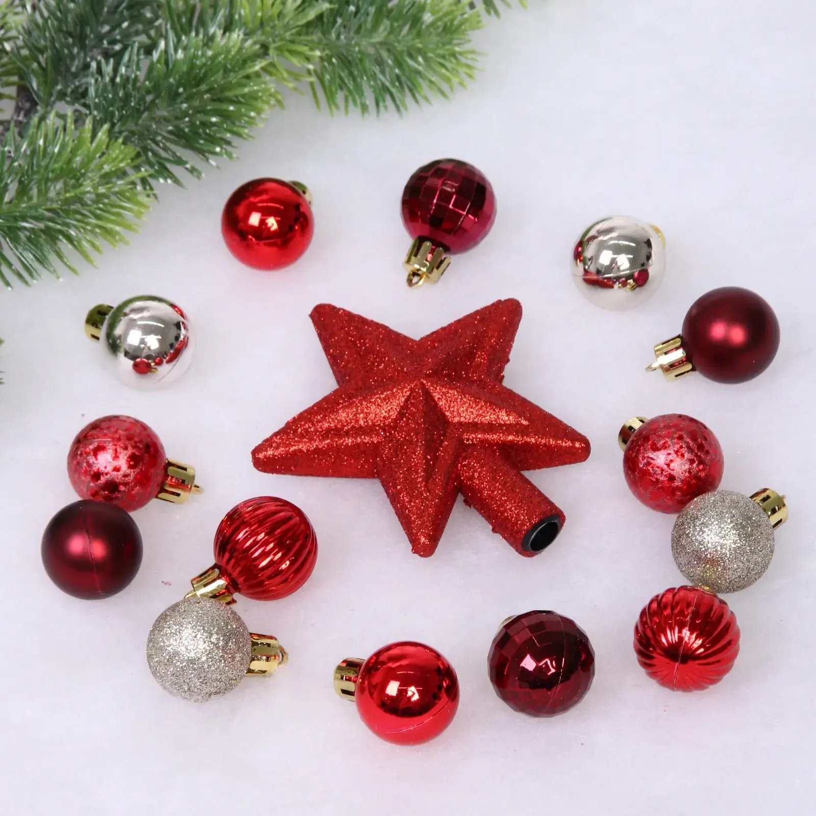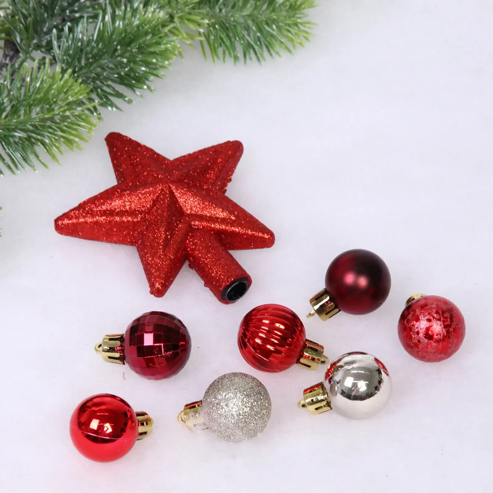 Набор включает 30 предметов различных форм и размеров, включая шары и звезду, что позволяет вам проявить креативность в оформлении. Украшения легко подвешиваются благодаря креплениям, что делает их удобными в использовании. Они идеально подойдут как для домашнего декора, так и для оформления общественных мест, создавая атмосферу праздника.