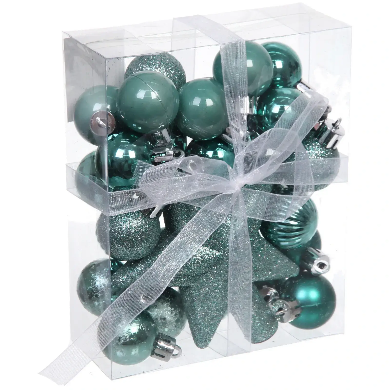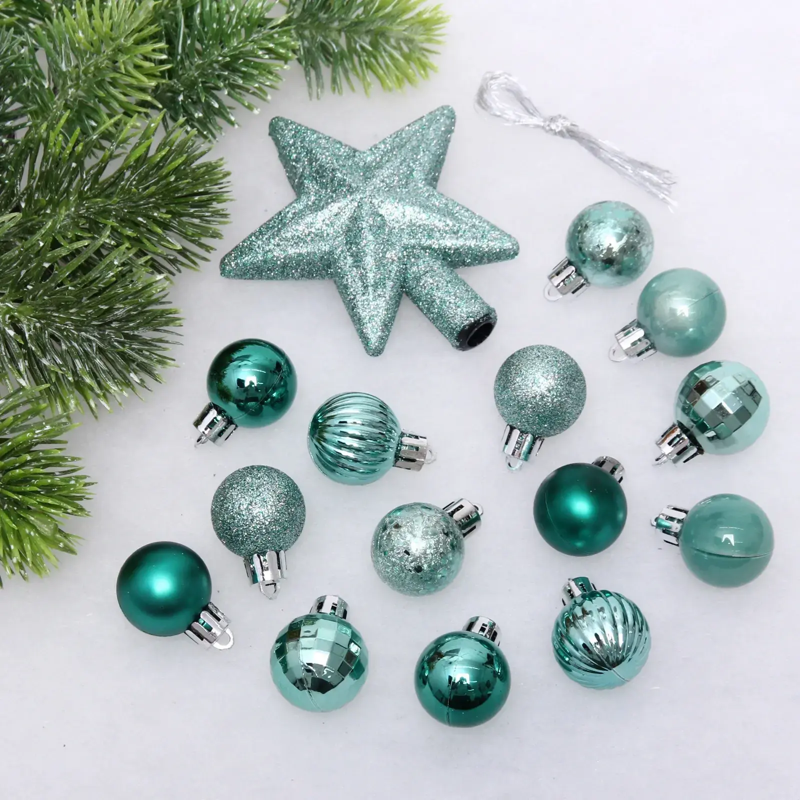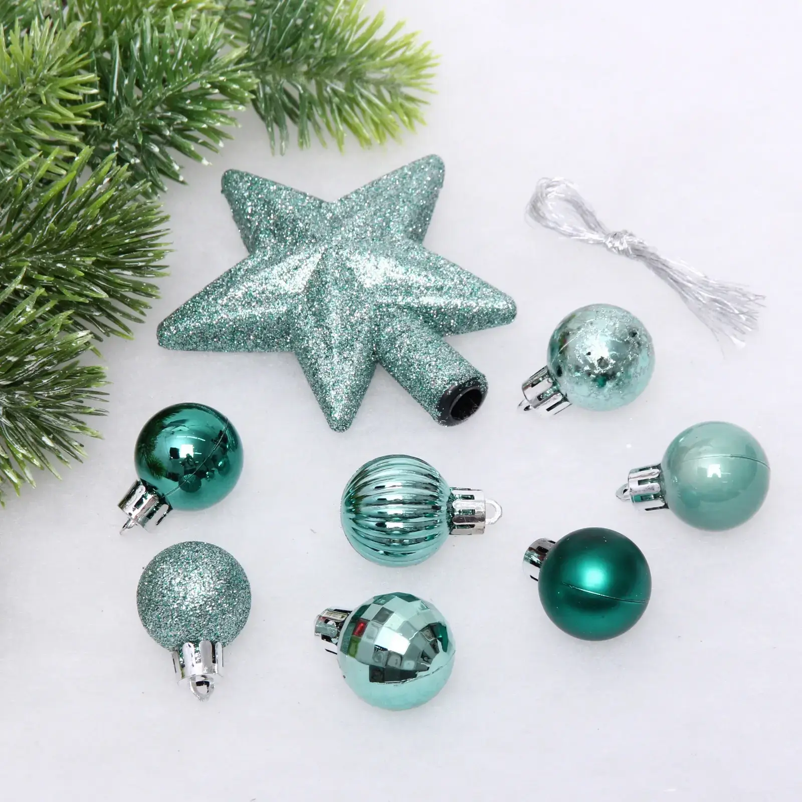Набор подходит для всех, кто хочет быстро и стильно украсить ёлку. Шарики разных оттенков зелёного и бирюзового цвета, а также звезда с блестками, создадут гармоничное сочетание и подчеркнут новогоднее настроение. Украшения легко подвешиваются благодаря металлическим креплениям, что делает процесс декорирования простым и приятным.