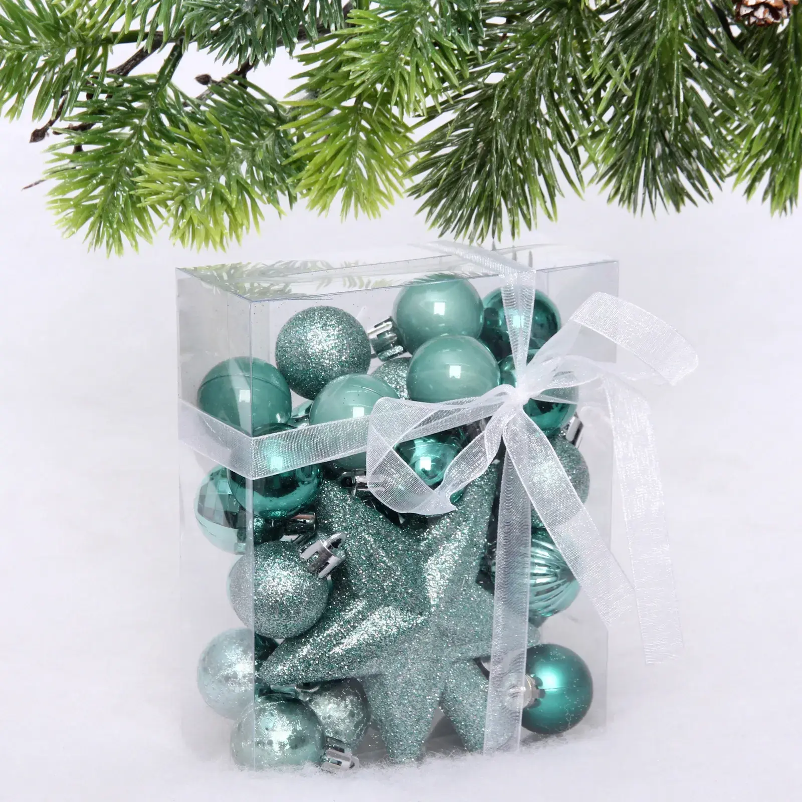 В набор входят 30 предметов, включая шары различных форм и текстур: гладкие, матовые и с блестками. Звезда выполнена из блестящего материала и станет великолепным акцентом на вашей ёлке. Размеры шариков варьируются, что добавляет интереса к общему дизайну. Упаковка также выглядит стильно и празднично, что делает её идеальной для хранения украшений после праздников.