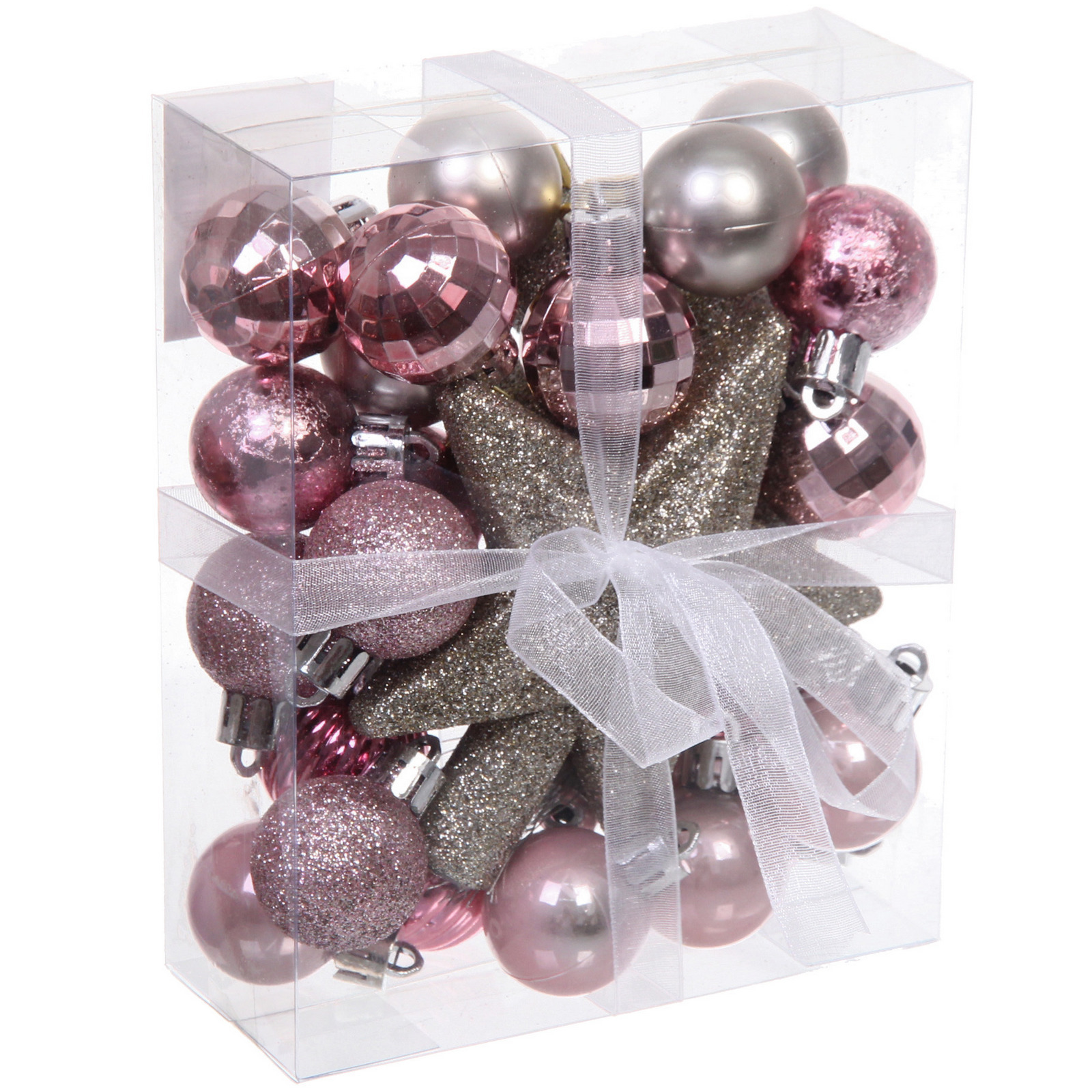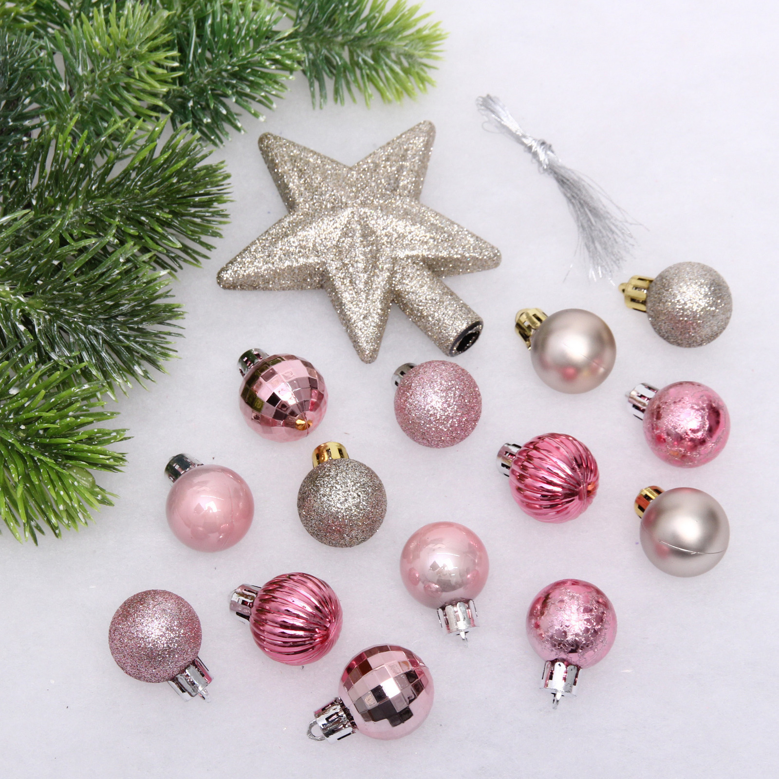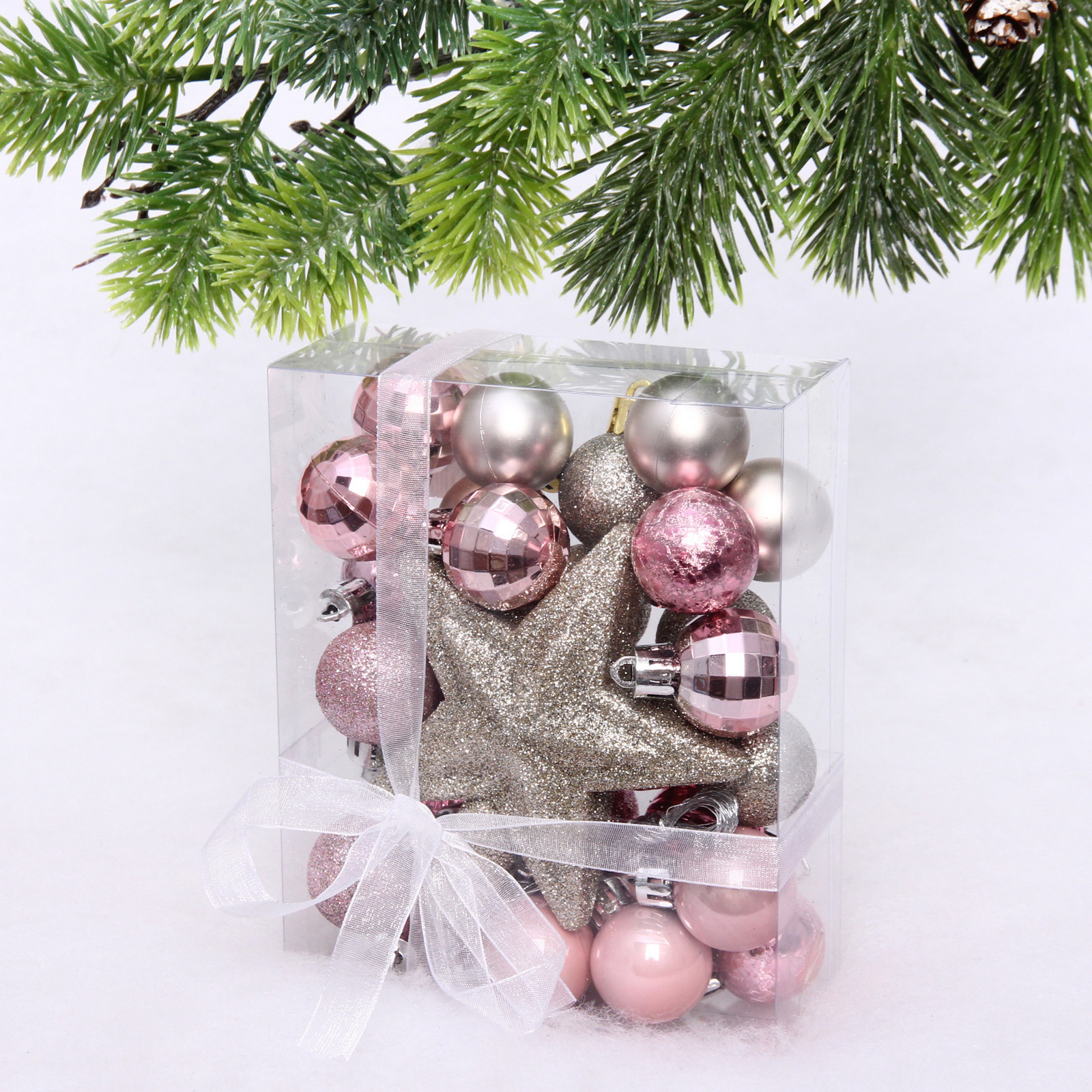 Каждое украшение в наборе выполнено с вниманием к деталям. Шары имеют разные отделки: некоторые из них гладкие, другие — с блестками, что позволяет создать уникальный стиль. Упаковка прозрачная и аккуратно перевязана белой лентой, что делает набор отличным подарком для близких. Размеры и формы шаров варьируются, что позволяет вам проявить креативность при оформлении.