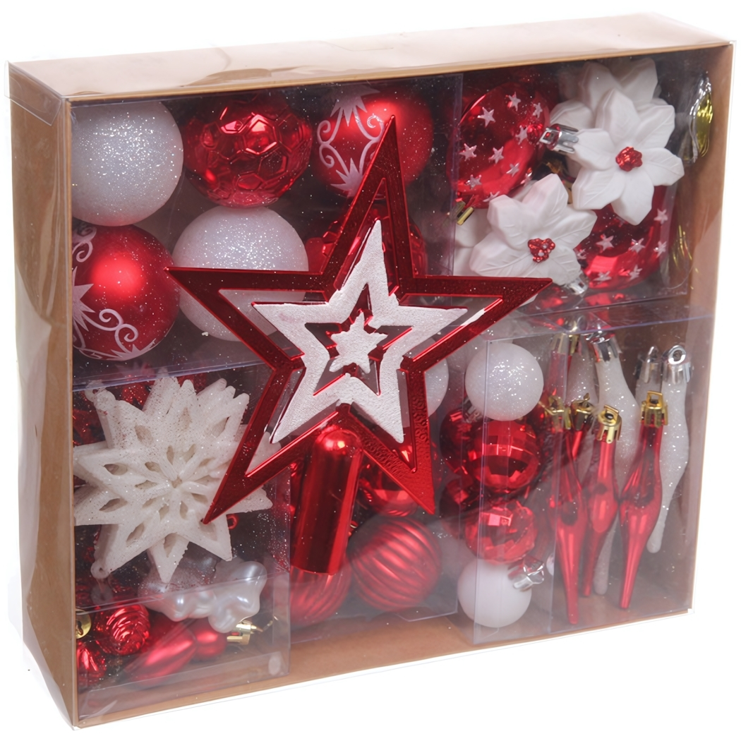Набор ёлочных украшений "Сказочная зима" 45 предметов, пластик, красно-белая гамма
