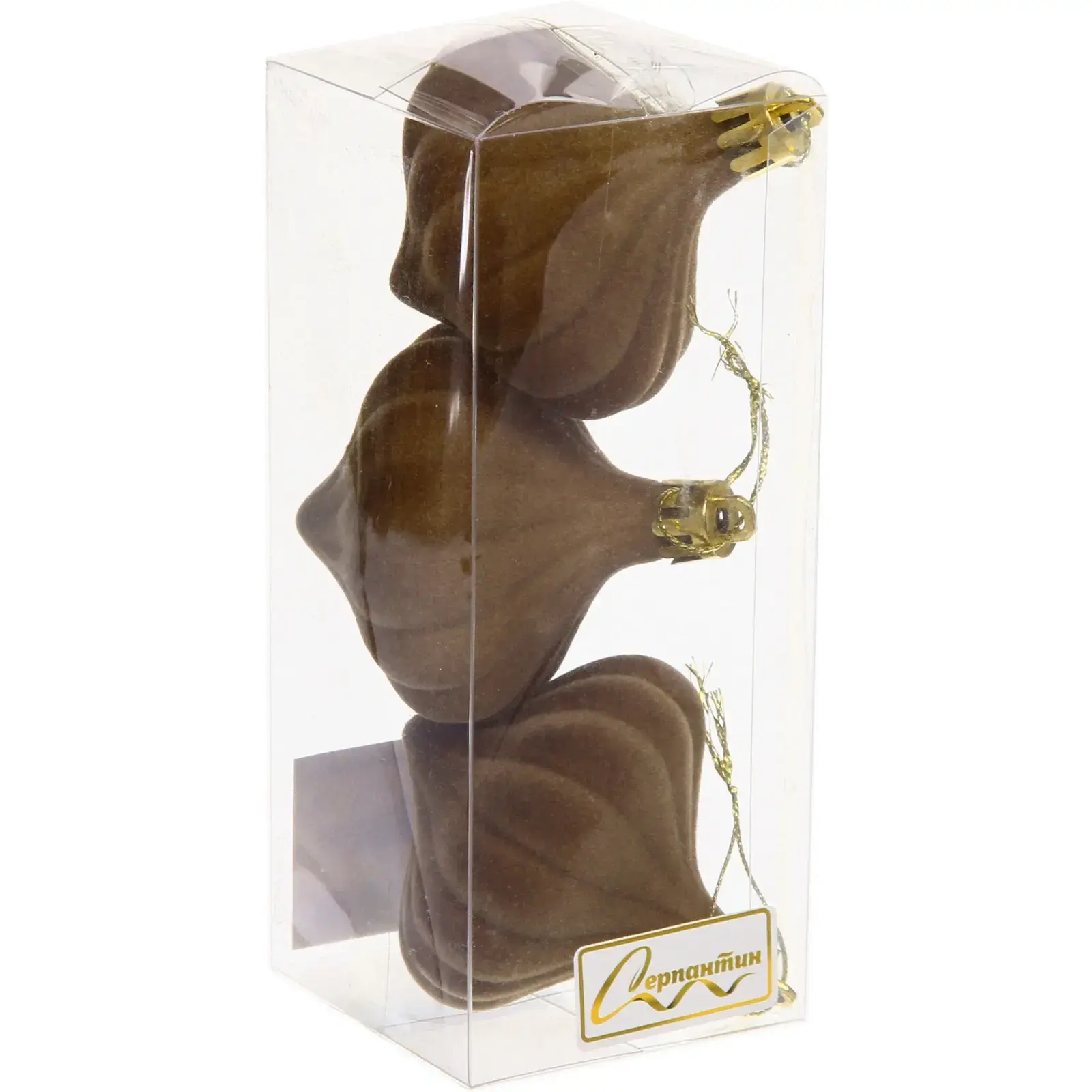 Набор ёлочных украшений VELOUR «Волшебная юла» 6 см (набор 3 шт), Кофейный, пластик, для елки и декорирования