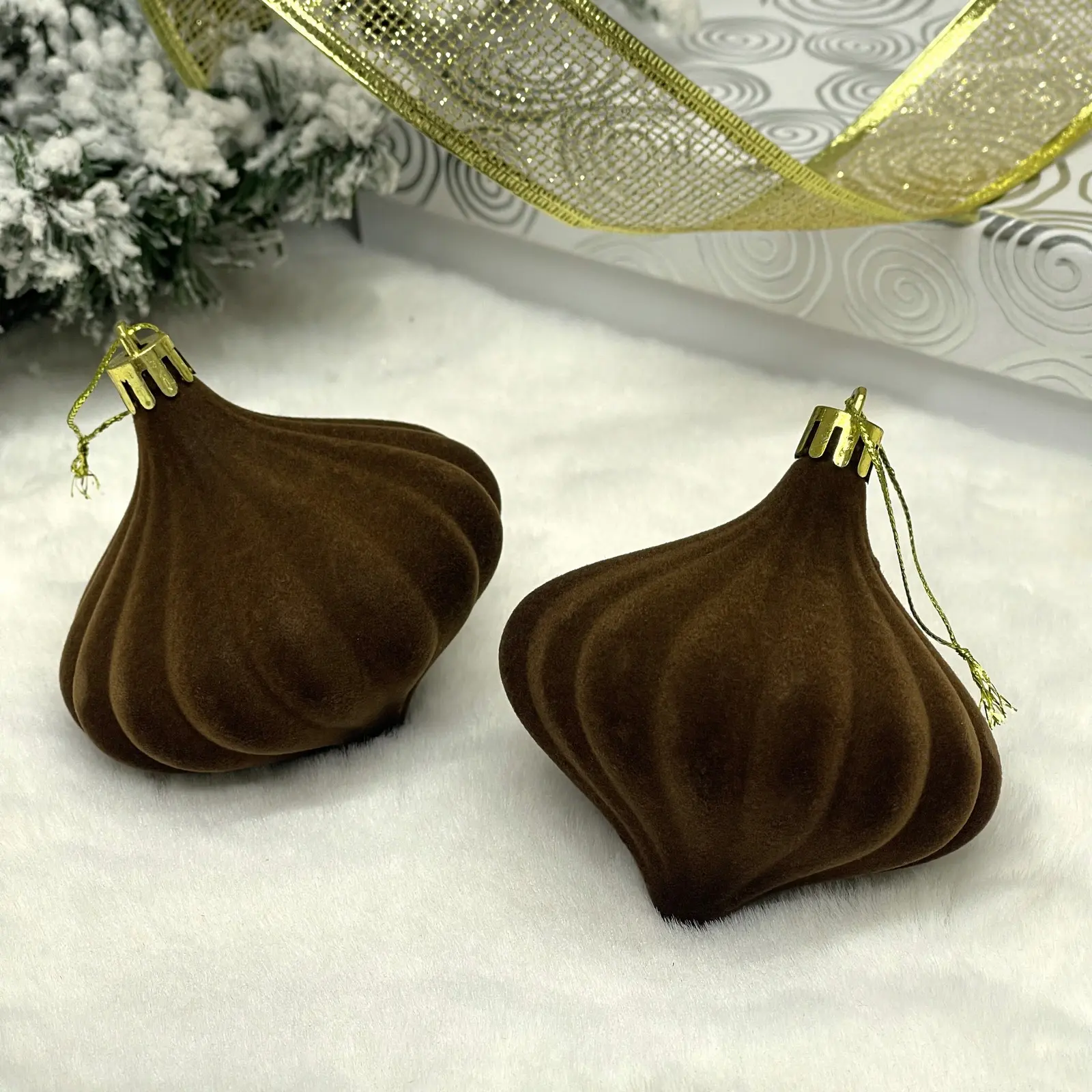 Элегантные ёлочные украшения премиум-класса из коллекции VELOUR придадут вашей новогодней ёлке особый шарм и изысканность. Матовая бархатистая поверхность цвета горького шоколада создает ощущение роскоши и уюта.