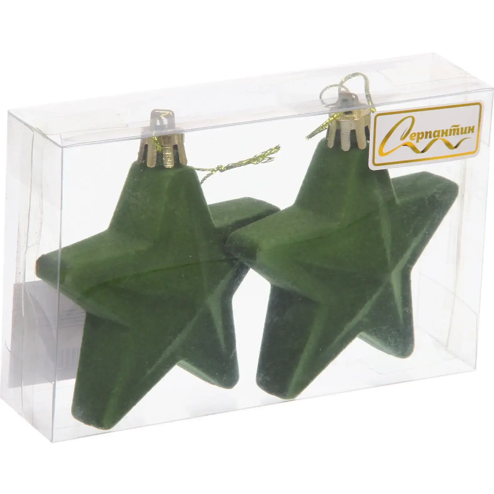 Набор ёлочных украшений VELOUR «Звезда» 8 см (набор 2 шт), Изумруд, пластик, для елки и декорирования